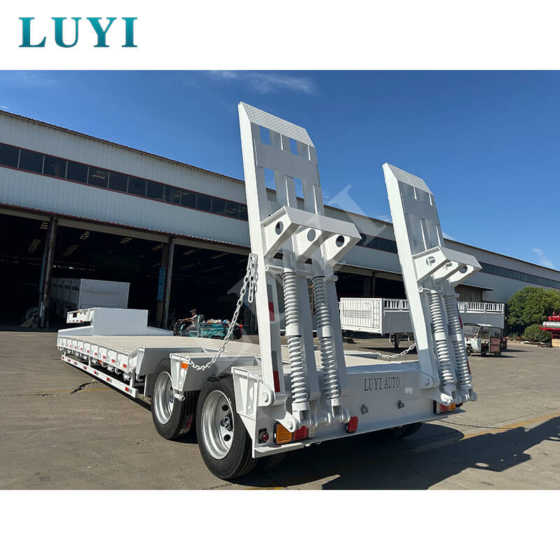 中国山東省製の LUYI の 2 軸 20 フィート グースネック ローベッド セミトレーラーは、大型トラック輸送用の高性能ソリューションです。最大積載量は120トン、最大積載重量は40トンで、重量貨物のニーズへの対応に優れています。