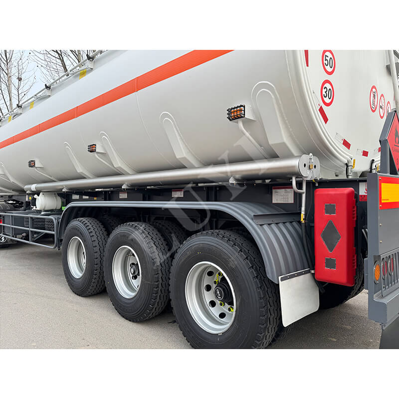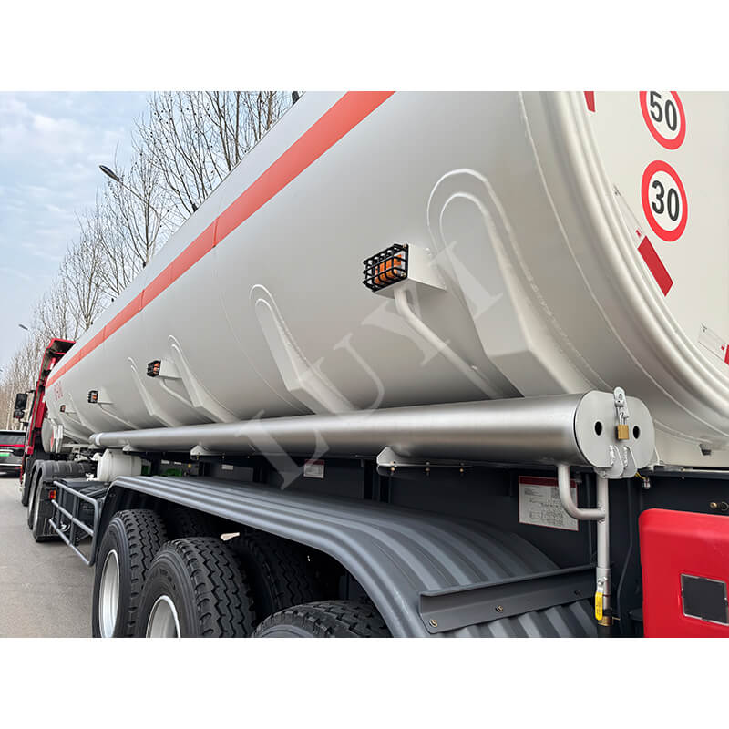 タンク本体の寸法は 12500×2500×3600 mm で、主に鋼製ですが、必要に応じて炭素鋼やアルミニウム合金材料を組み合わせることができます。 3つの車軸はCIMC Dongyue、FUWA、BPWなどの有名ブランドから厳選されており、機械式サスペンションと組み合わせて走行安定性を確保しています。主要コンポーネントは十分に装備されています。28 トンの JOST 標準サポートレッグが安定したサポートを提供します。キングピンには、2 インチ (50 mm) または 3.5 インチ (90 mm) のオプションの JOST モデルがあります。タイヤは12R22.5などの3仕様を用意。 90×13×10層の板バネにより耐荷重性能が向上します。さらに、顧客のニーズに応じて色をカスタマイズでき、さまざまな輸送シナリオに適応します。