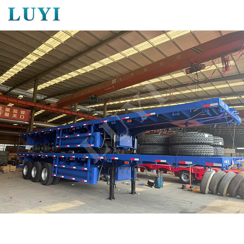 LUYI 3 軸 4 フィート 50 トン フラットベッド セミトレーラーは、産業物流およびインフラストラクチャ プロジェクトの強力な主力製品です。 3 軸設計により 50 トンの荷重が科学的に分散され、路面圧力が軽減され、高速道路の規制に準拠し、走行安定性が確保されます。約 1.22 メートル (ガードレール/地上高) の重要な寸法は、積み降ろしの利便性と貨物保護のバランスが取れており、フォークリフトやクレーンの操作に適しています。