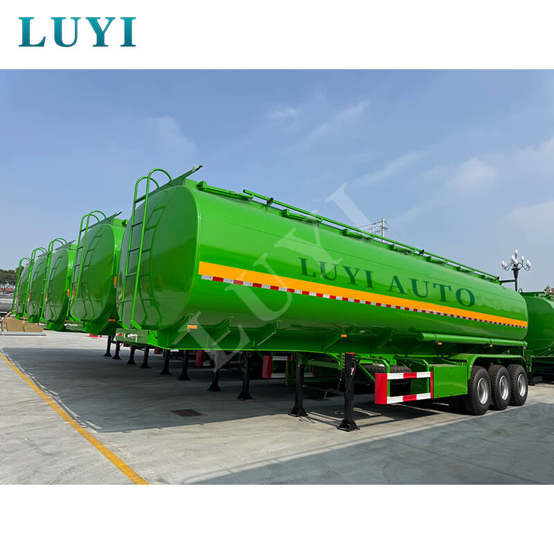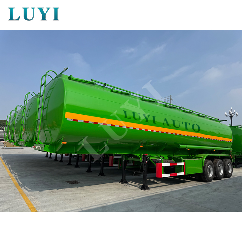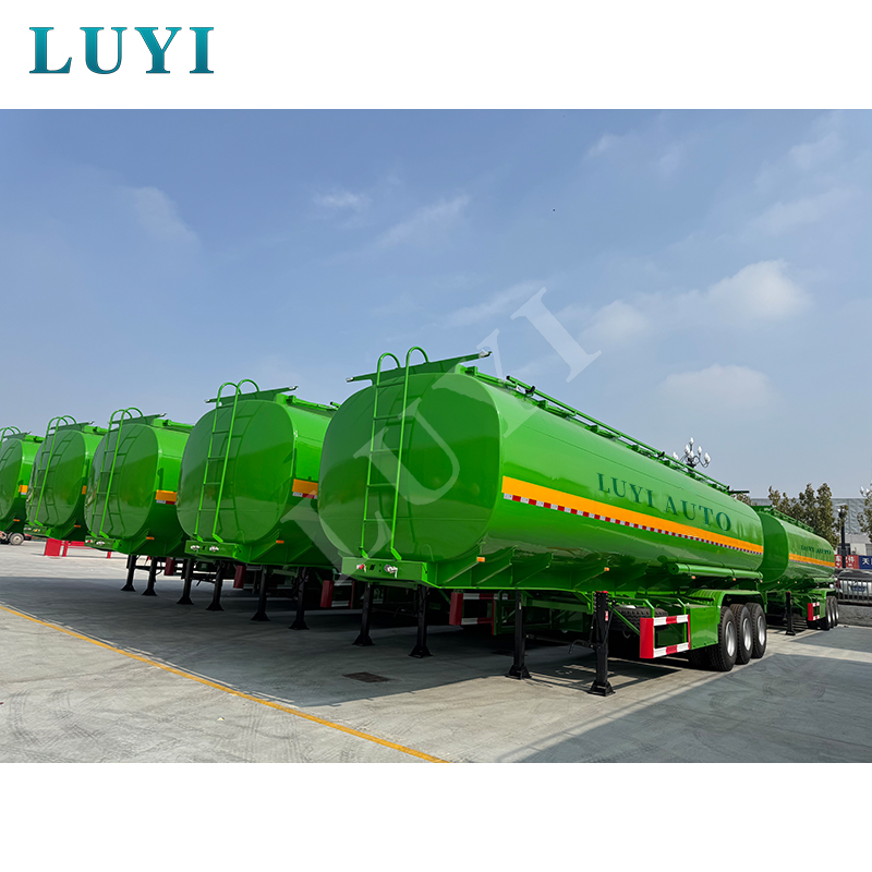 LUYI 3 軸 40,000 リットル高耐久炭素鋼石油タンカー セミトレーラーは、中国山東省出身で、燃料輸送用に特別に設計されたセミトレーラーです。堅実な素材と柔軟な構成により、さまざまなトラックトレーラー輸送シナリオに適しています。
