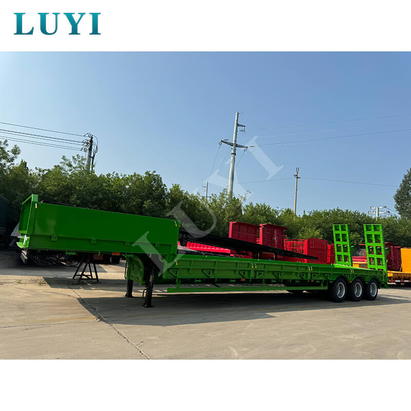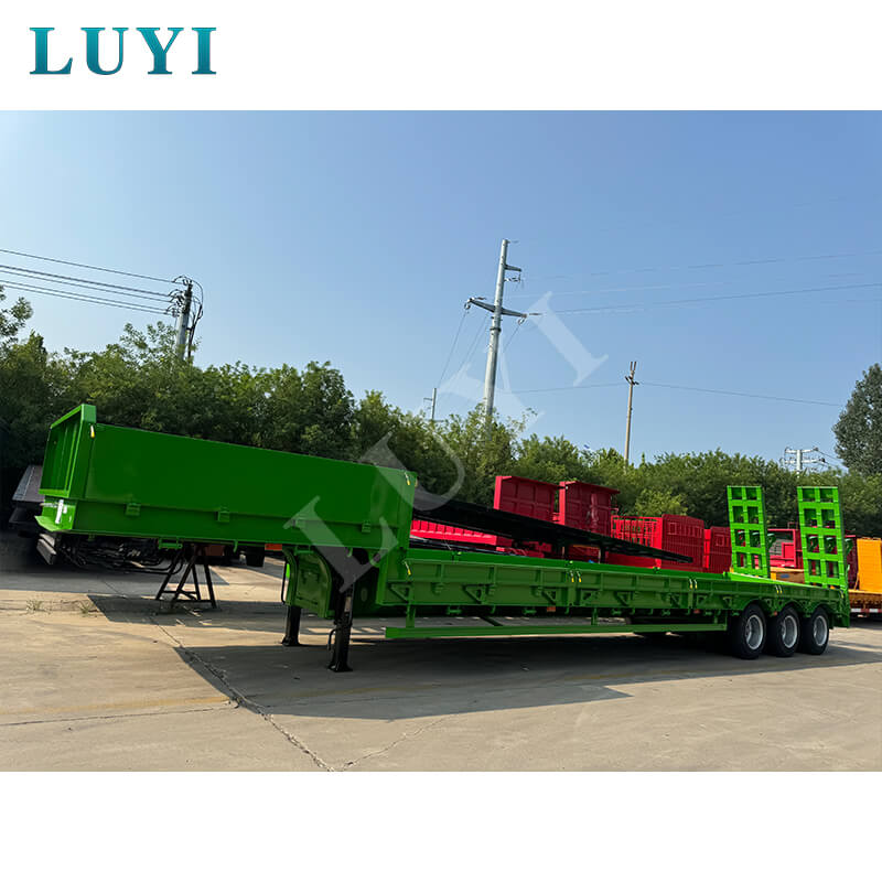 中国山東省出身の Luyi 3 軸ローベッド セミトレーラーは、重機輸送用に特別に設計されたプロ仕様のトラック トレーラーです。