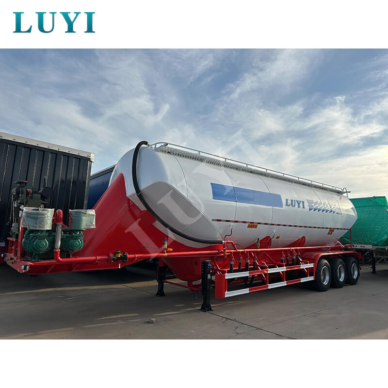 LUYI 3 軸 50CBM バルク V 型セメント タンカー セミトレーラー (粉末タンク車とも呼ばれる) は、中国山東省出身で、バルク セメント粉末を輸送するために特別に設計されたセミトレーラーです。トラック トレーラーのシナリオに適しており、建築資材輸送分野に効率的なソリューションを提供します。