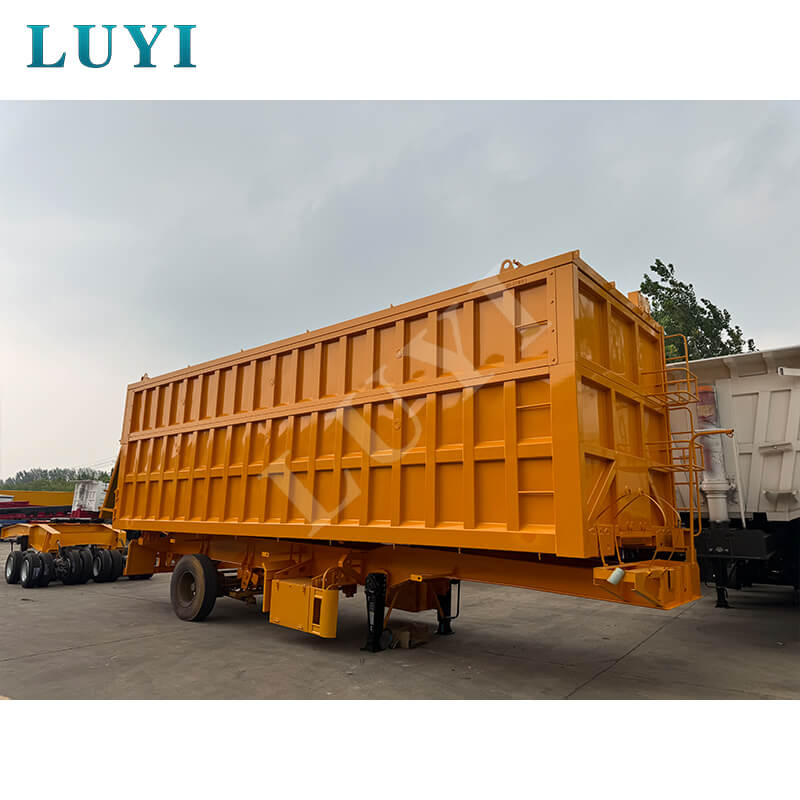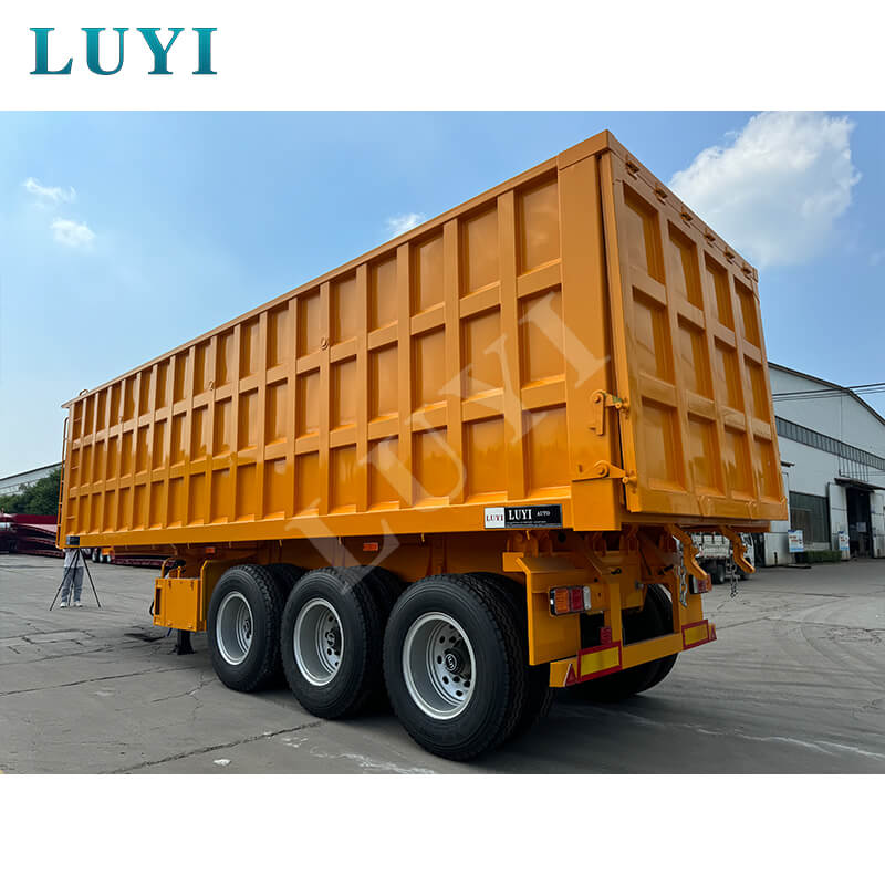 この 3 軸 60 トン リアティッピング ダンプ セミトレーラーは、積載量 80 トンの頑丈な新型セミトレーラーで、高負荷の運転シナリオに適しています。本体はスチール製、底板は3-5mmの縞板で滑りにくく耐久性があります。 13/16トンのFuwa/BPW/CIMCアクスルと12本のタイヤが装備されています。リムは8.00-20/8.5-20/8.8-20仕様から選択可能で、トレッド幅は1820mm、ホイールベースは7000~8000mmの間でフレキシブルに調整でき、高い安定性を確保します。