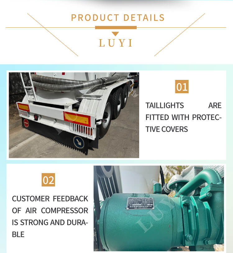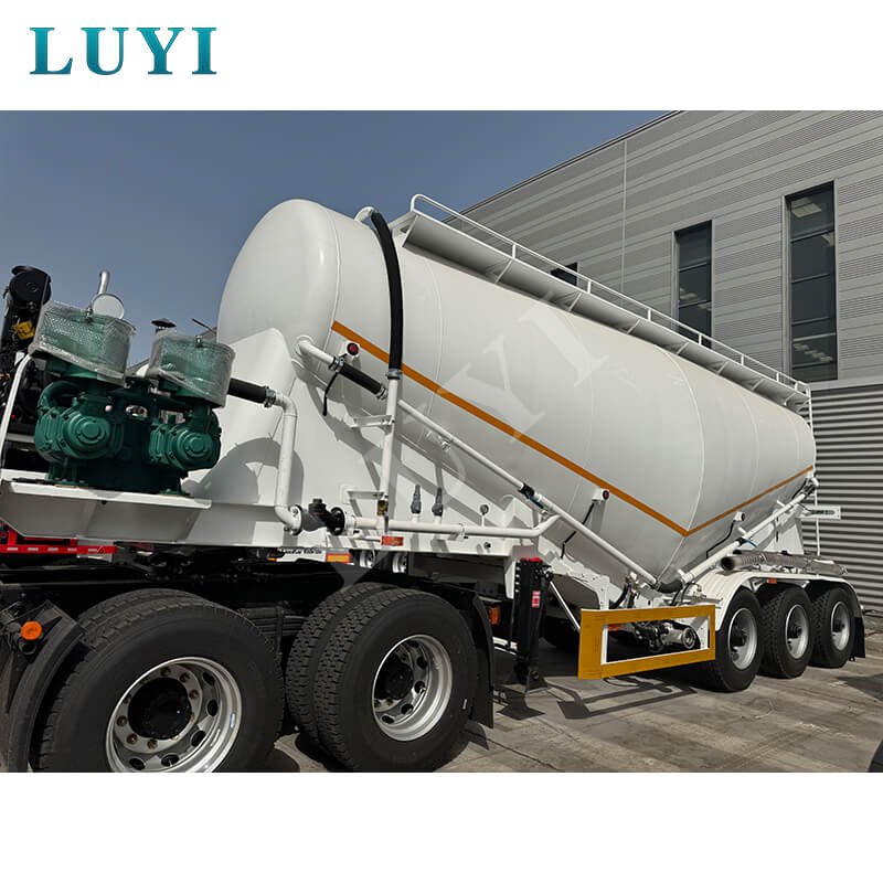 LUYI 3 軸 30-60 立方メートル セメント タンカーは、火薬タンク トラックとしても知られ、中国の山東省で生まれました。バルクセメント粉末の輸送に特化して設計された高効率セミトレーラーで、貨物輸送のニーズに的確に応えます。
