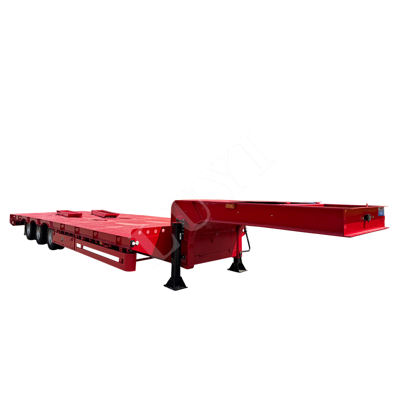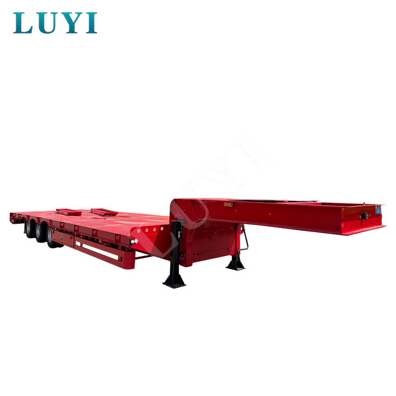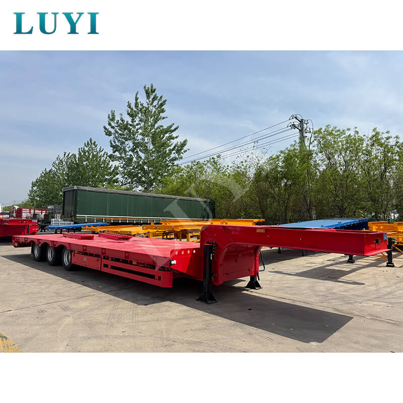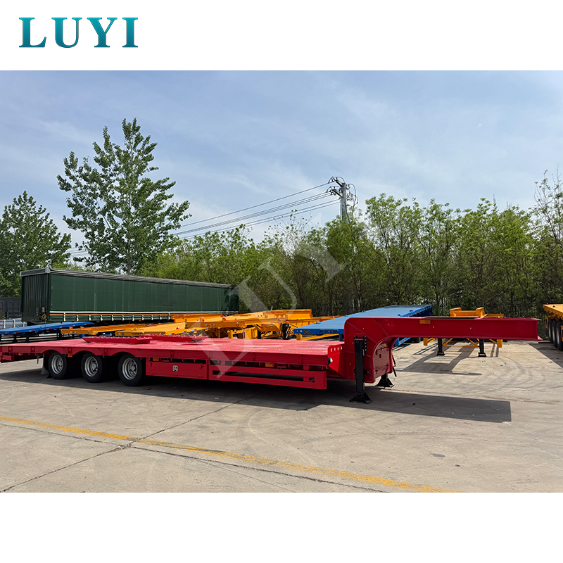 LUYI 3 軸 80 トン ローシャーシ フラットベッド セミトレーラーは、中国山東省の最新の大型輸送車両で、重機の輸送シナリオに合わせてカスタマイズされています。