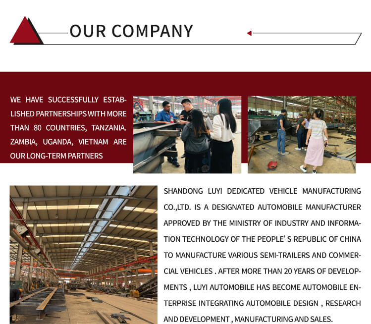細部では、標準的な28トンランディングギアと2つの仕様(2インチ/50mmまたは3.5インチ/90mm)のJOSTキングピンを装備し、さまざまなトラクターとの互換性を備えています。ボディカラーは顧客の要求に応じてカスタマイズでき、ポリウレタン塗装はオプションのアップグレードで、美観と耐食性の両方を向上させます。エンジニアリング、鉱山、その他の頑丈な輸送分野にとって信頼できる選択肢です。