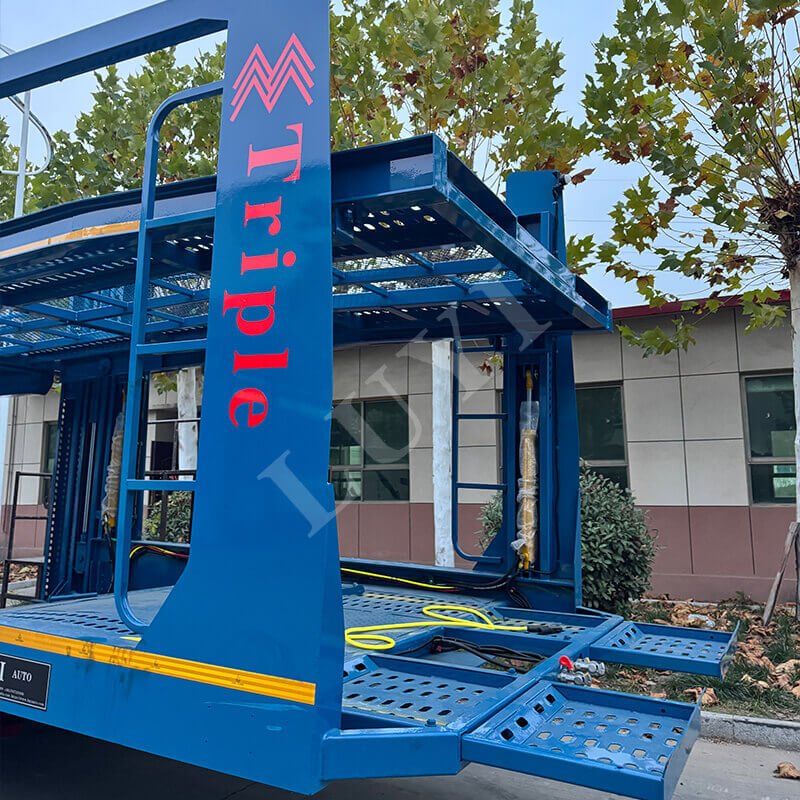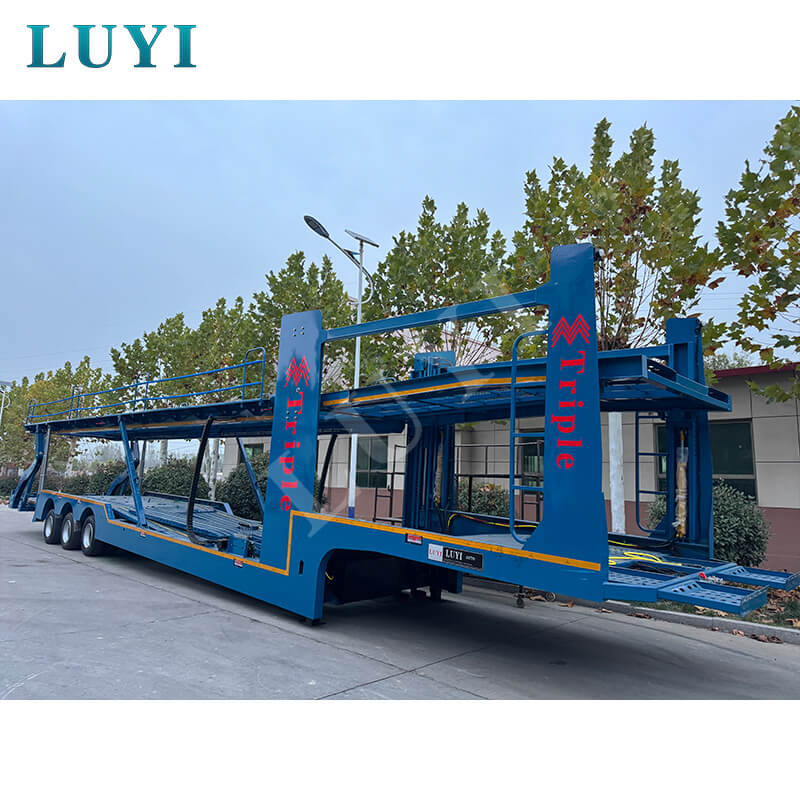 Luyi 3軸自動車輸送セミトレーラー、17メートルコンテナトレーラーは、中国製の新しい大型輸送機器として、自動車とコンテナの輸送用に特別に設計されています。積載量は 25 トンで、主流の貨物ニーズを満たし、実用性と信頼性を兼ね備えています。
