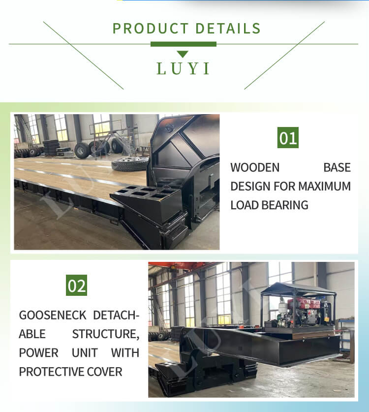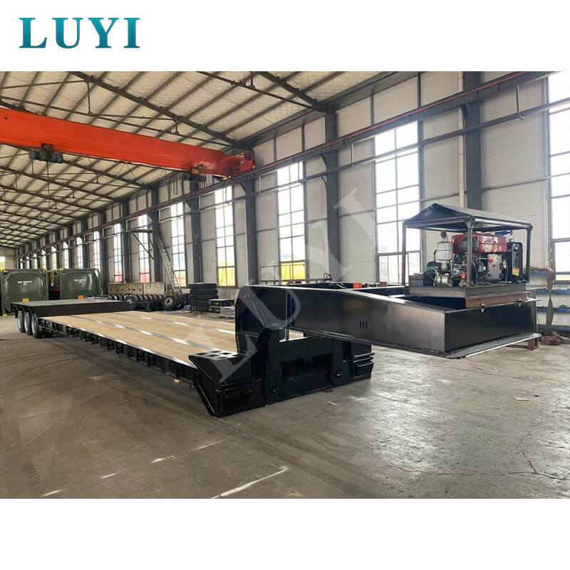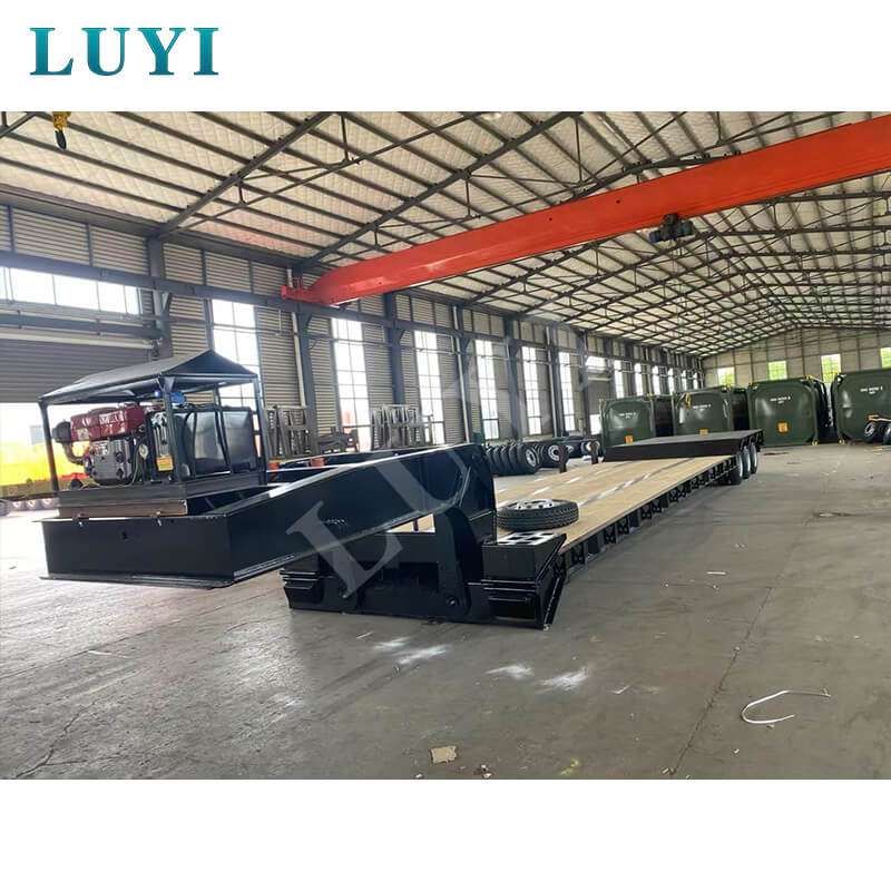 中国山東省の Luyi Vehicle によって製造された 3 軸の取り外し可能なグースネック ローベッド セミトレーラーは、最大積載量 100 トンの信頼できる大型輸送ソリューションです。サイズは 15000×3000×1800mm で、トラックトレーラー用途のニーズに完全に適合します。