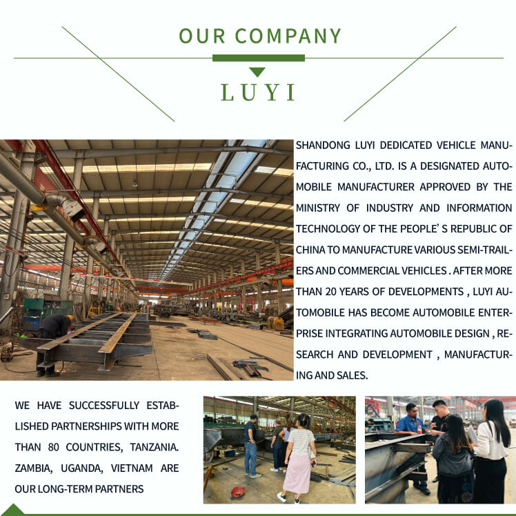 高品質のスチールで作られ、メインビームは強力な耐荷重能力を実現するために T700/Q345 スチールを使用し、サイドビームは構造の安定性を高めるために 16# チャネル鋼を採用しています。機械式またはエアサスペンションの柔軟なサスペンション オプションを提供し、さまざまな道路状況に適応できるように 9.00-22.5 リムと組み合わせた 12R22.5 タイヤが装備されています。標準の 28 トン着陸装置により、安全な駐車と積み込みが保証されます。さらに、1年間のアフター保証も付いておりますので、安心してお使いいただけます。