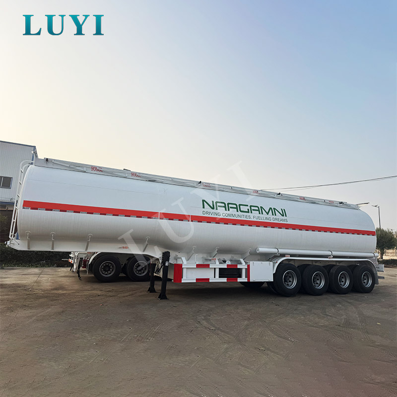 中国山東省LUYI社の4軸54,000L燃料タンカーセミトレーラーは、燃料輸送専用に設計された高品質セミトレーラーです。高級スチールで作られており、優れた耐久性と 30,000L から 60,000L までの柔軟な積載容量を誇ります。 4 つのアクスル (2/3/4/5 アクスルのオプションで利用可能) と有名な 13/16T FUWA/BPW アクスルを装備し、80 トンという優れた最大積載量を実現し、優れた輸送効率を保証します。