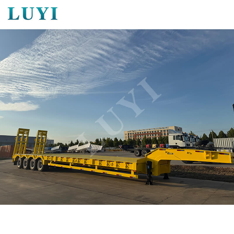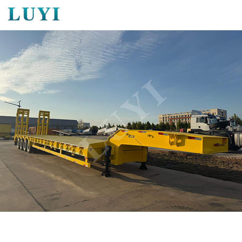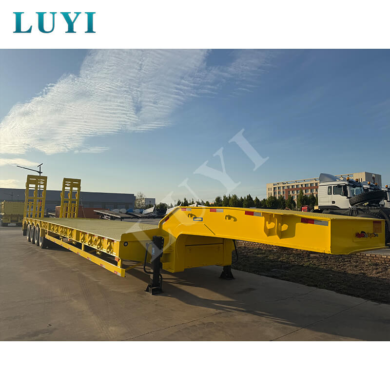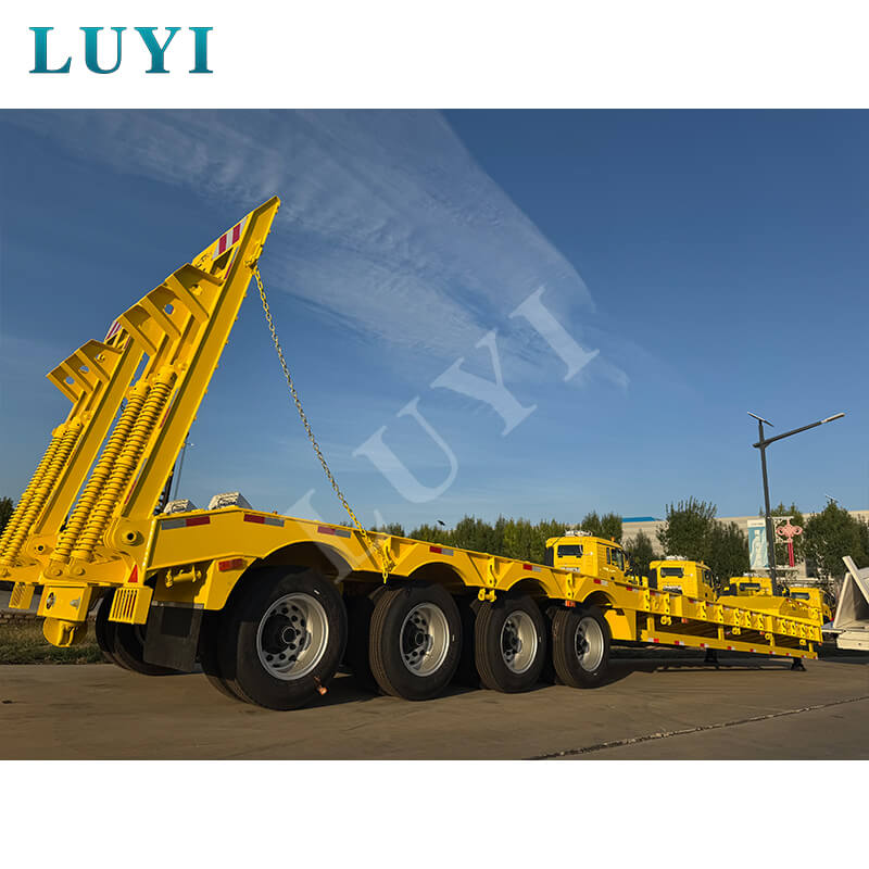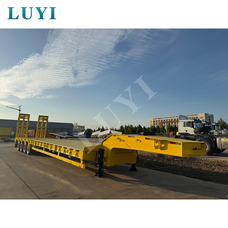 中国山東省出身の Luyi 4 軸 80 トン カスタム グースネック ローボーイ トレーラーは、真新しいプロ用セミトレーラーです。最大有効荷重は 30,000 kg を超え、トラック トレーラーのシナリオに適しており、重い荷物を効率的に運ぶことができます。