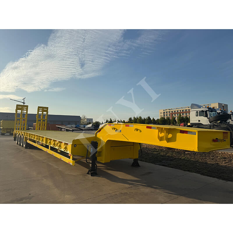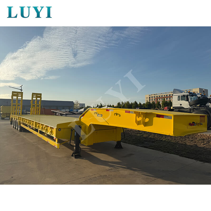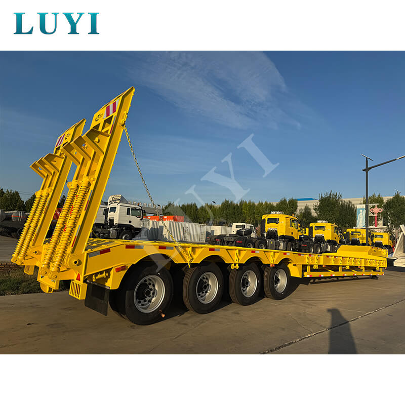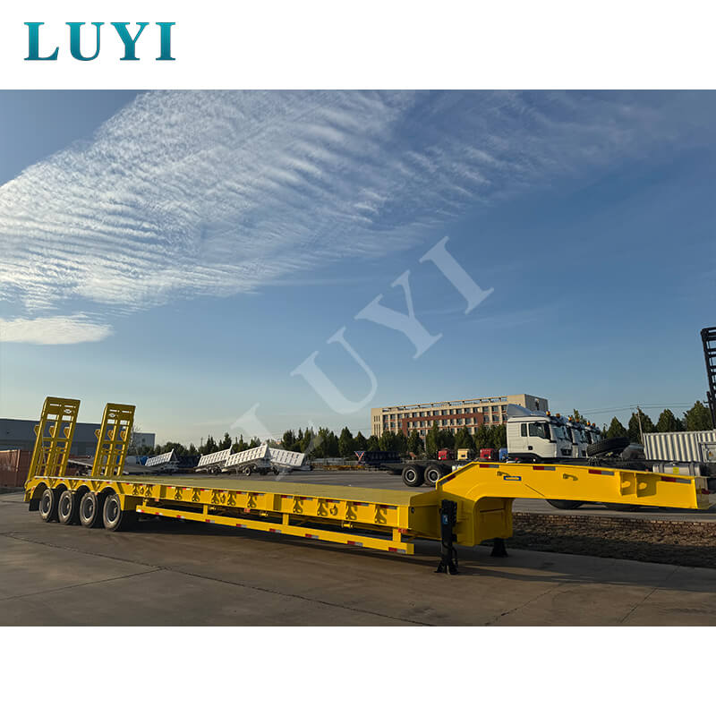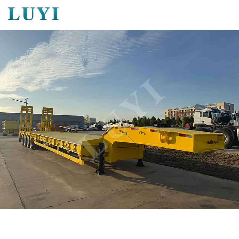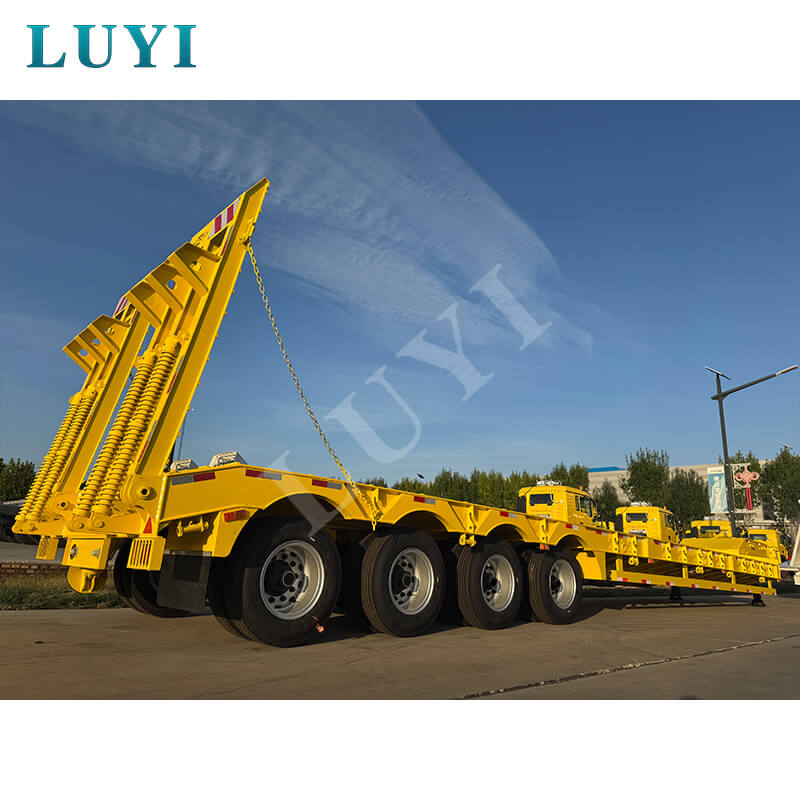 中国山東省出身の Luyi 4 軸 80 トン カスタム グースネック ローボーイ トレーラーは、真新しいプロ用セミトレーラーです。最大有効荷重は 30,000 kg を超え、トラック トレーラーのシナリオに適しており、重い荷物を効率的に運ぶことができます。