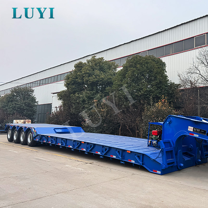 LUYI 4 軸グースネックローベッドセミトレーラーは、中国山東省で生産され、重量貨物輸送用に特別に設計された高品質のセミトレーラーです。高級鋼で作られており、自重はわずか 6,350KG、定格荷重容量は 50,000KG、最大ペイロード範囲は 30T ~ 200T で、優れた耐荷重性能を発揮します。