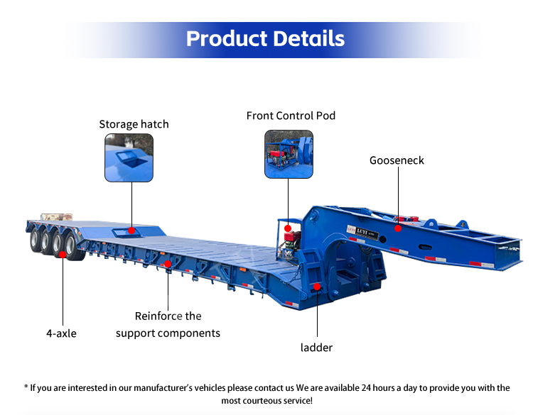 グースネック設計により、積み降ろしが容易になり、追加の補助装置なしで重機をトレーラーに乗り入れることができます。建設機械、鉱山機械、大型鉄鋼製品の輸送に最適なこのセミトレーラーは、効率と安全性のバランスが取れており、物流やエンジニアリング業務にとって信頼できる選択肢となります。