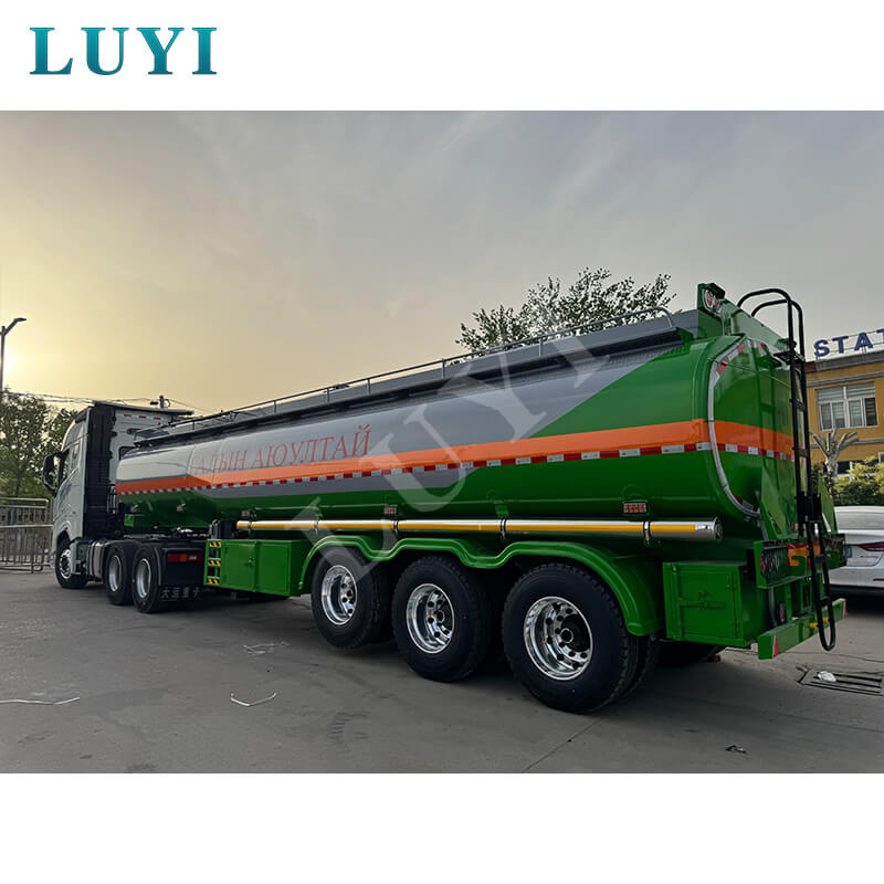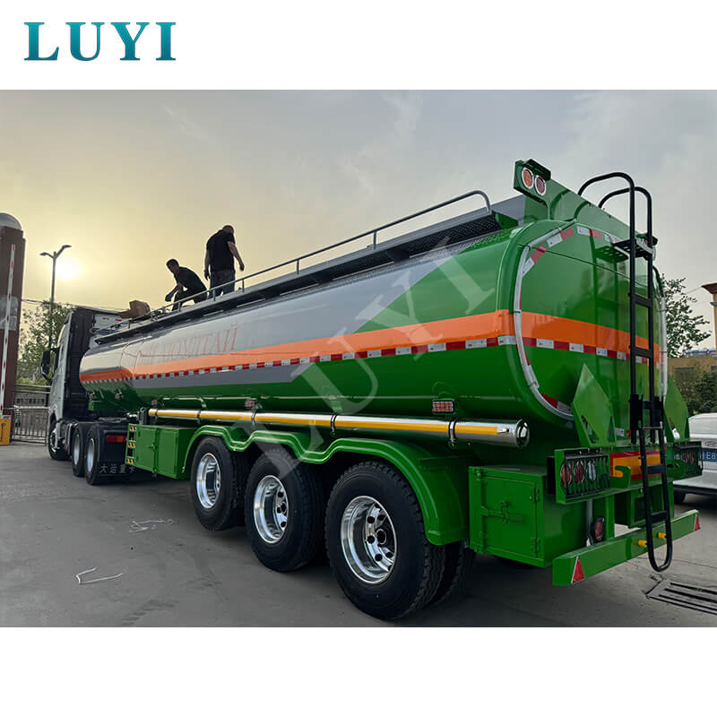 中国山東省発の LUYI 3 軸オイルタンクセミトレーラーは、多様な燃料輸送ニーズを満たす 40m3 および 45m3 の容量を提供します。全体の寸法は 12500×2500×3600MM で、最大積載量は 30,000kg を超え、積載量は 30T から 100T の範囲であり、大型トラックトレーラーのシナリオに適しています。