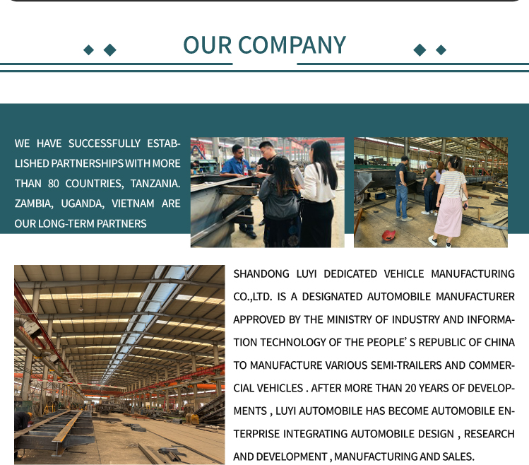 13/16 トンの FUWA/BPW/BAIPING アクスルを備えたオプションの 2 ~ 6 アクスルによる柔軟な構成を備えています。さまざまな道路状況に合わせて、機械式またはエア式サスペンションを選択できます。標準部品には、28Ton ランディングギア、WABCO ブレーキシステム、JOST 2.0/3.5 インチ キングピンが含まれます。タイヤとリムの複数の仕様はオプションであり、すべてのコアアクセサリは高品質の製品です。合理的な構造と効率的な荷降ろしにより、バルクセメント、フライアッシュ、その他の粉体輸送にコスト効率の高い理想的な選択肢となります。
