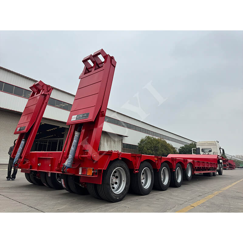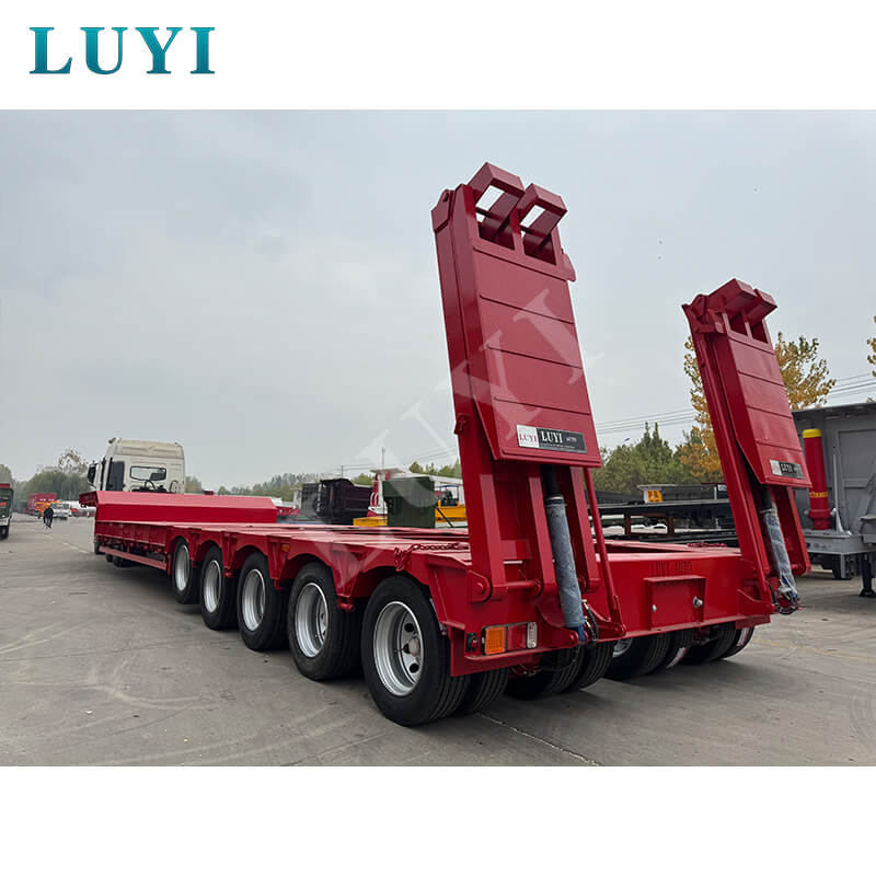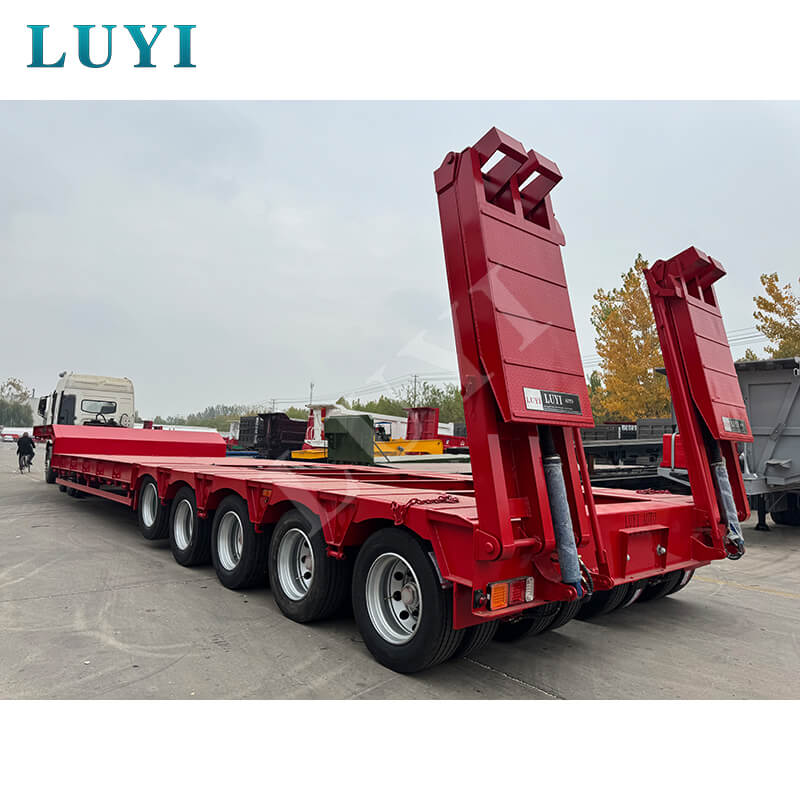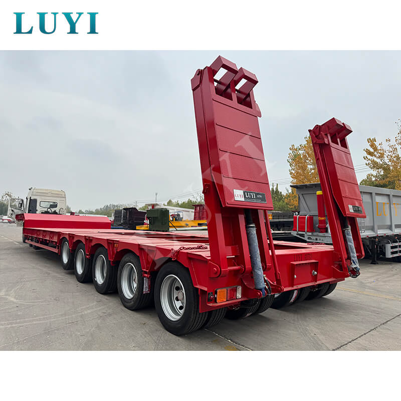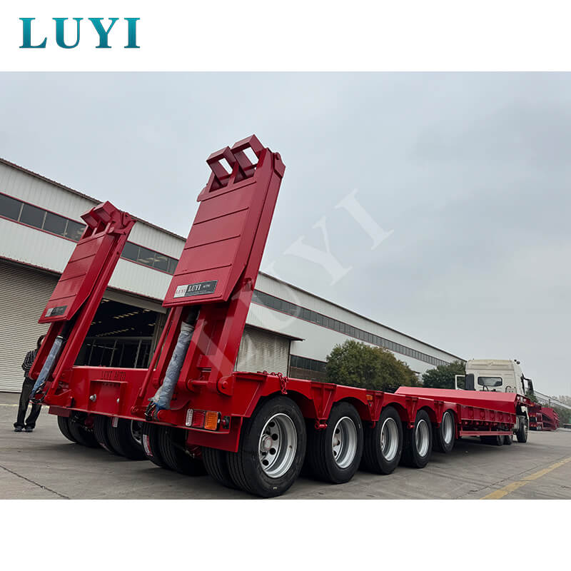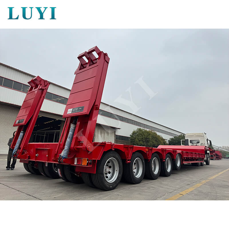 LUYI 5 軸 180 トン 5 ライン 10 軸ローボーイ トレーラーは、もともと中国の山東省で生産されており、トラック トレーラー用途向けに特別に設計された真新しいセミトレーラーです。高い耐荷重能力と強力な安定性により、重量物輸送のニーズに応えます。