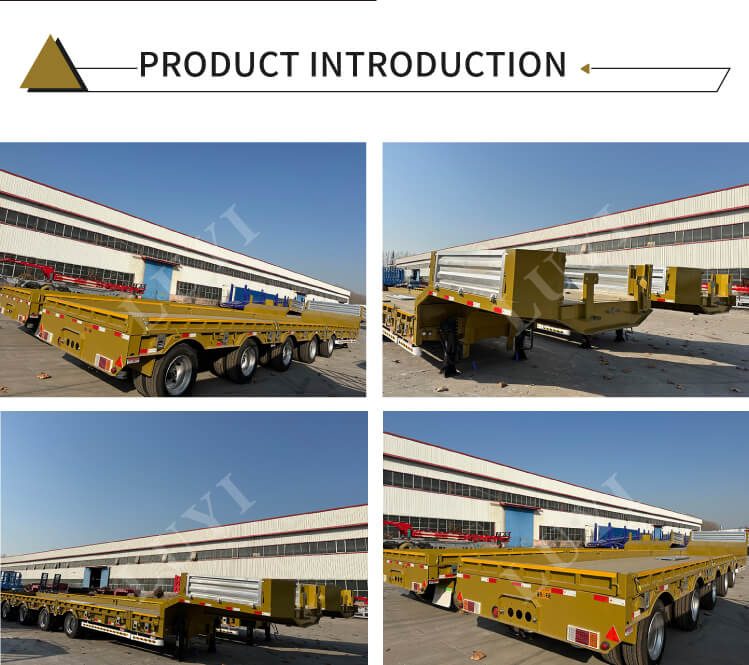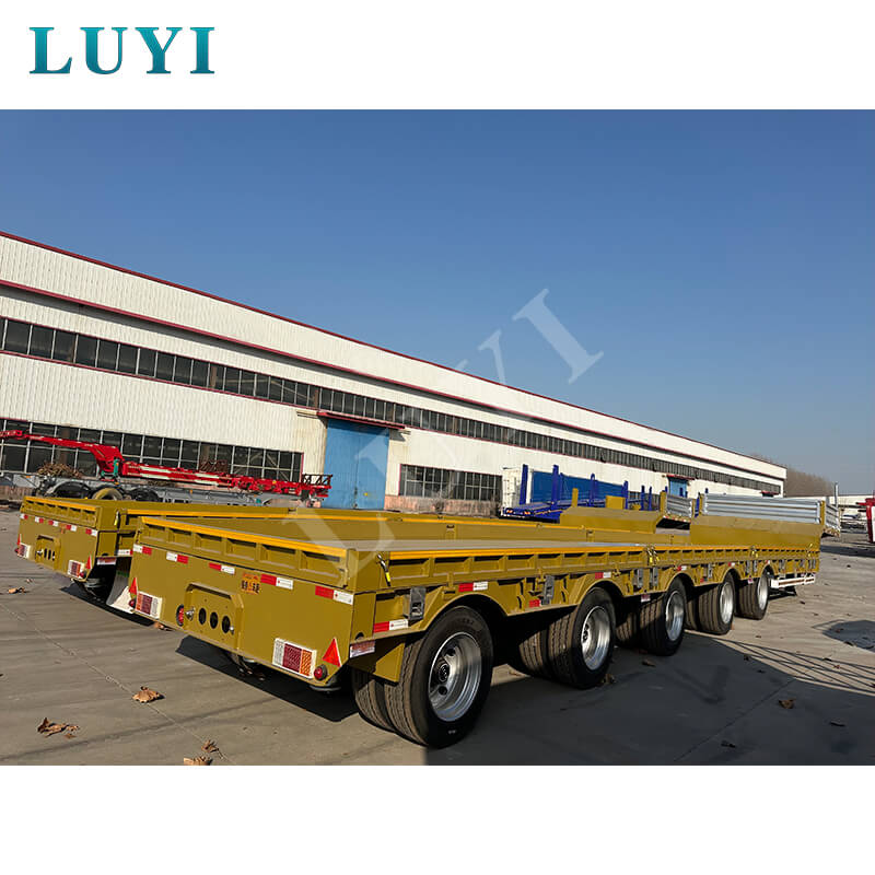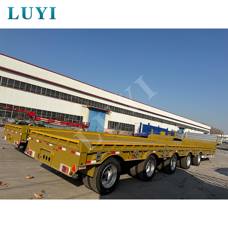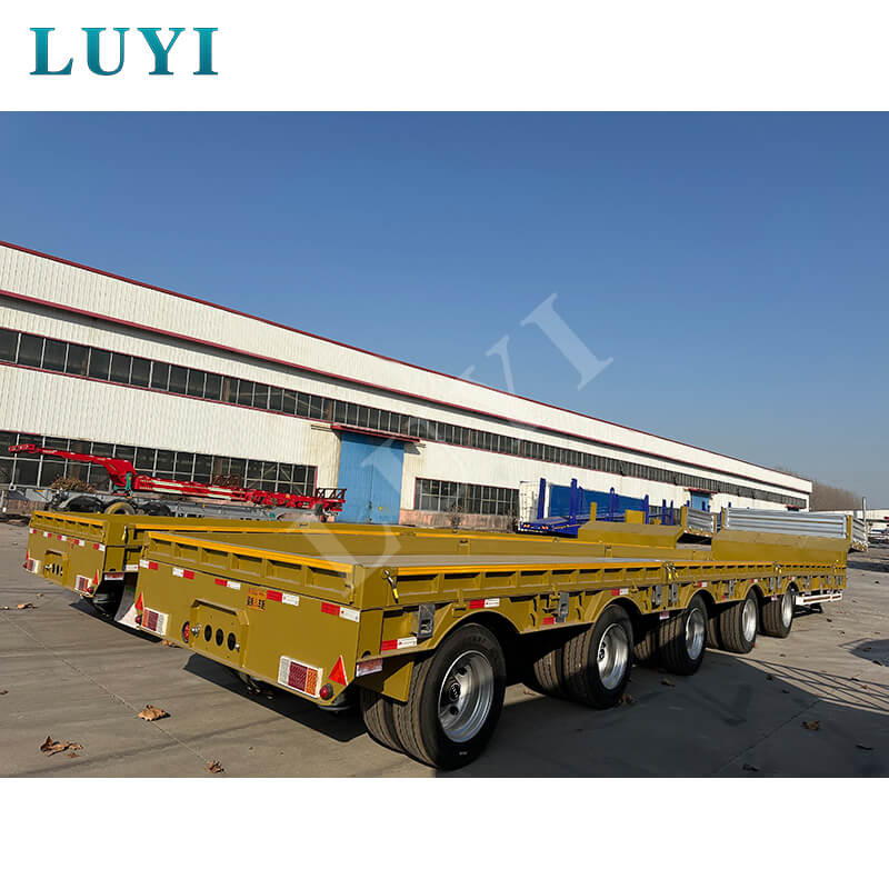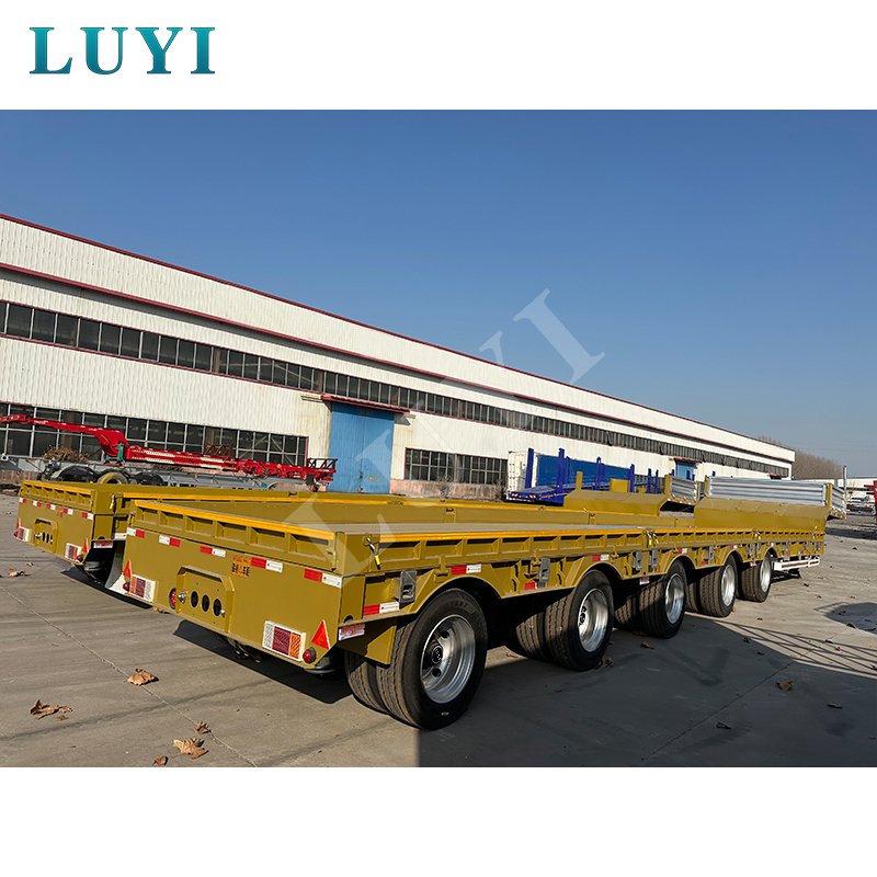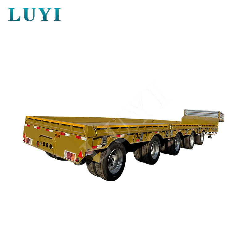 LUYI 5 軸 16 メートル 80 トン エアサスペンション ローベッド セミトレーラーは、中国山東省のプレミアム セミトレーラーで、大型機器の輸送に最適です。高張力鋼板で作られており、標準サイズは 16000×3500×1800mm、積載量は 60 ~ 200 トンで、大型機械などの重量物を容易に処理できます。