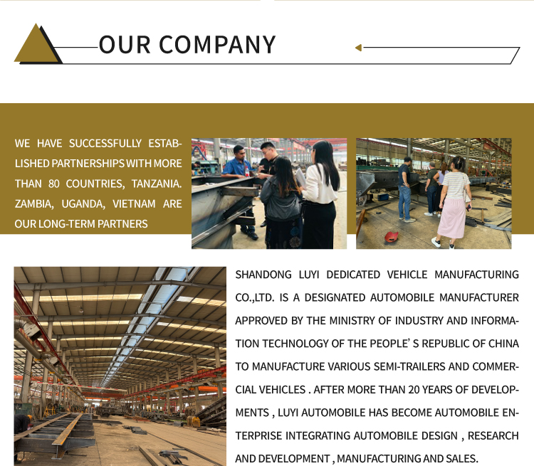 A: はい、私たち自身も工場を持っており、中国でこのビジネスに40年近く携わっています。私たちの工場は、中国の山東省でさまざまなトレーラーを製造している非常に有名な工場です。