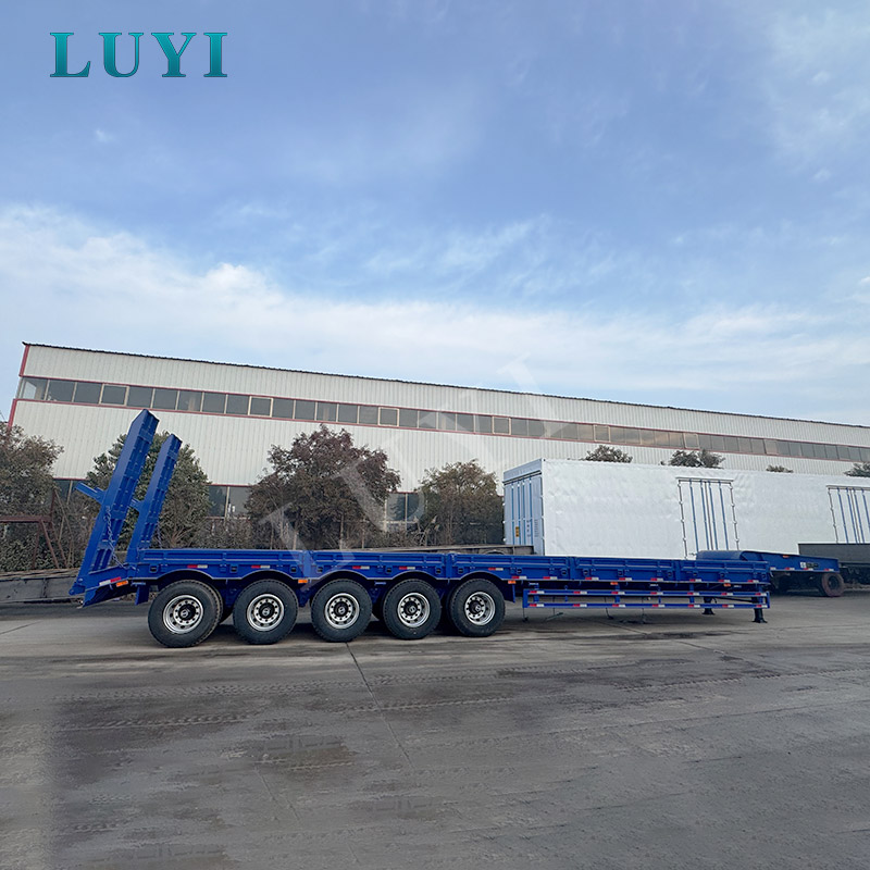 中国の山東省出身の Luyi 5 軸 80 トン大型低床セミトレーラーは、重量物輸送用に設計された頑丈なトラック トレーラーです。高品質の鋼材で作られており、寸法 130003000178 mm、最大耐荷重 80,000 kg を誇り、さまざまな重機を簡単に運ぶのに最適です。