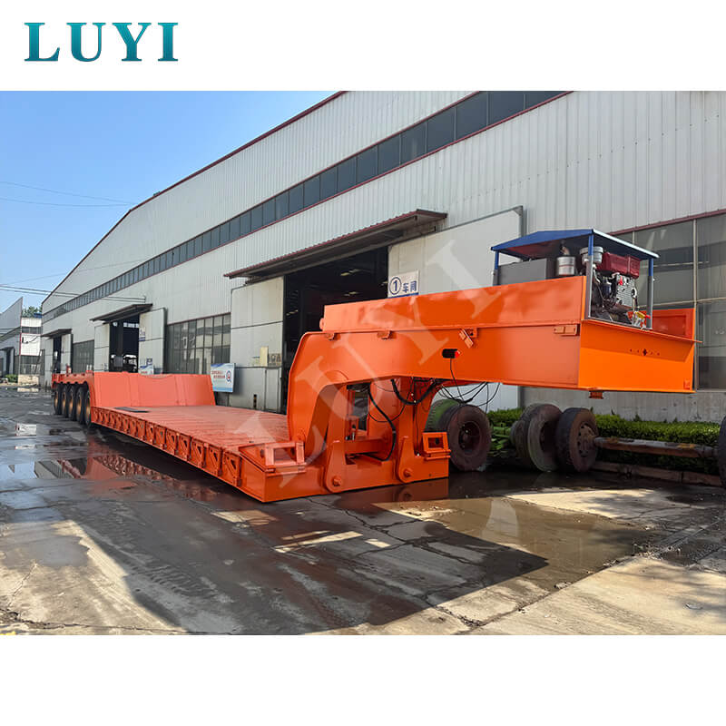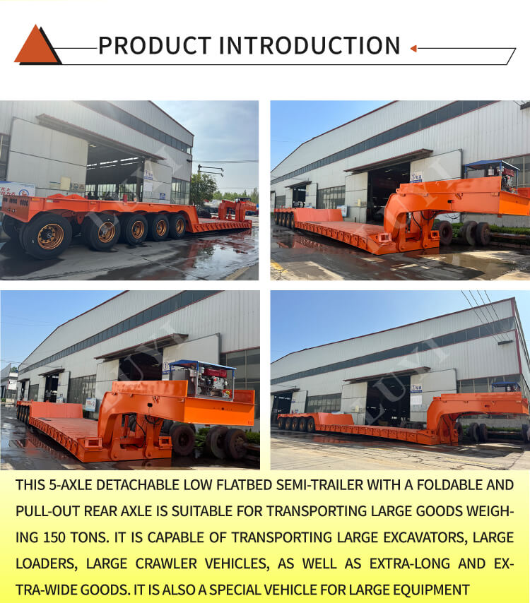 LUYI 5 軸取り外し可能なグースネックローベッドセミトレーラーは、中国の山東省で生産され、超重量貨物のニーズに合わせて調整された高性能大型輸送車両です。