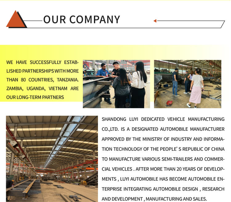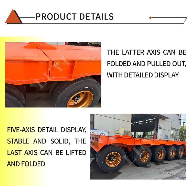 高品質の鋼材で作られており、サイズは17500×3000×1830mm、最大積載量は100Tで、大型で重い機器の輸送も容易に行えます。 FUWA、BPW、または LUYI ブランドで入手可能な 5 つの車軸が装備されており、12R22.5 タイヤと組み合わせられています。エアサスペンションとメカニカルサスペンションの両方のオプションが提供され、重い荷重下でも安定した走行と効果的な荷物の保護を保証します。