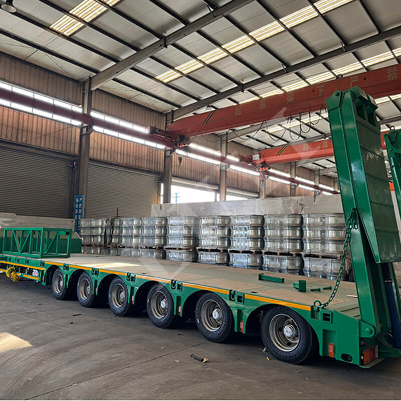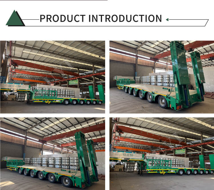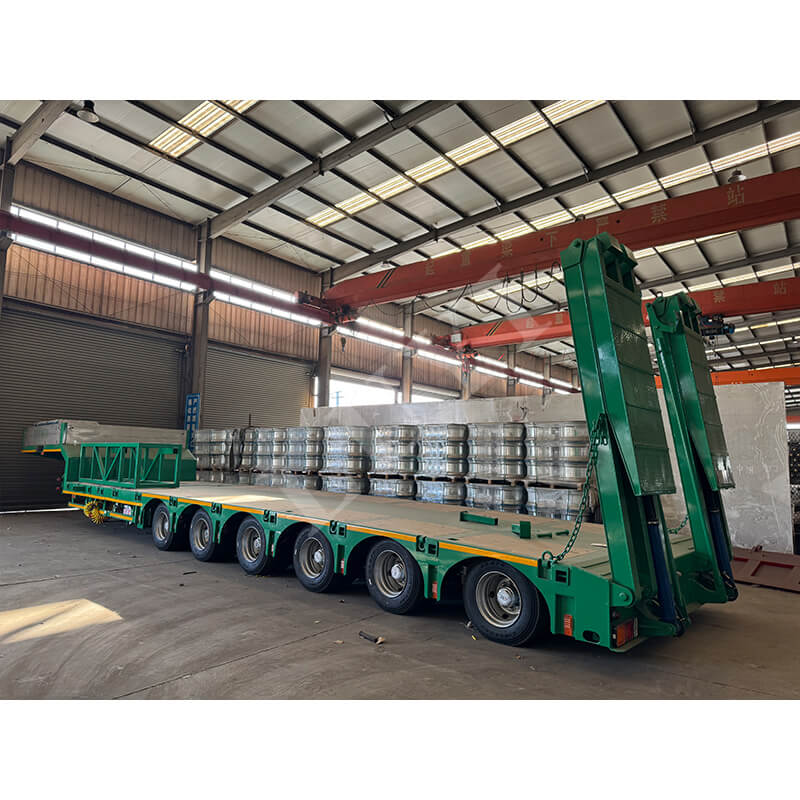 高品質の炭素鋼で作られたトレーラーは、頑丈で耐久性のある全体構造を備えています。最大有効荷重100トンで各種重機も楽々運搬可能です。 6 アクスル設計とメカニカル サスペンション システムを備え、11.00r20 と 12r22.5 の 2 つのタイヤ仕様に適合しています。強力な走行安定性が特徴で、さまざまな一般的な輸送道路状況に適応し、輸送中の商品の安全を確保します。