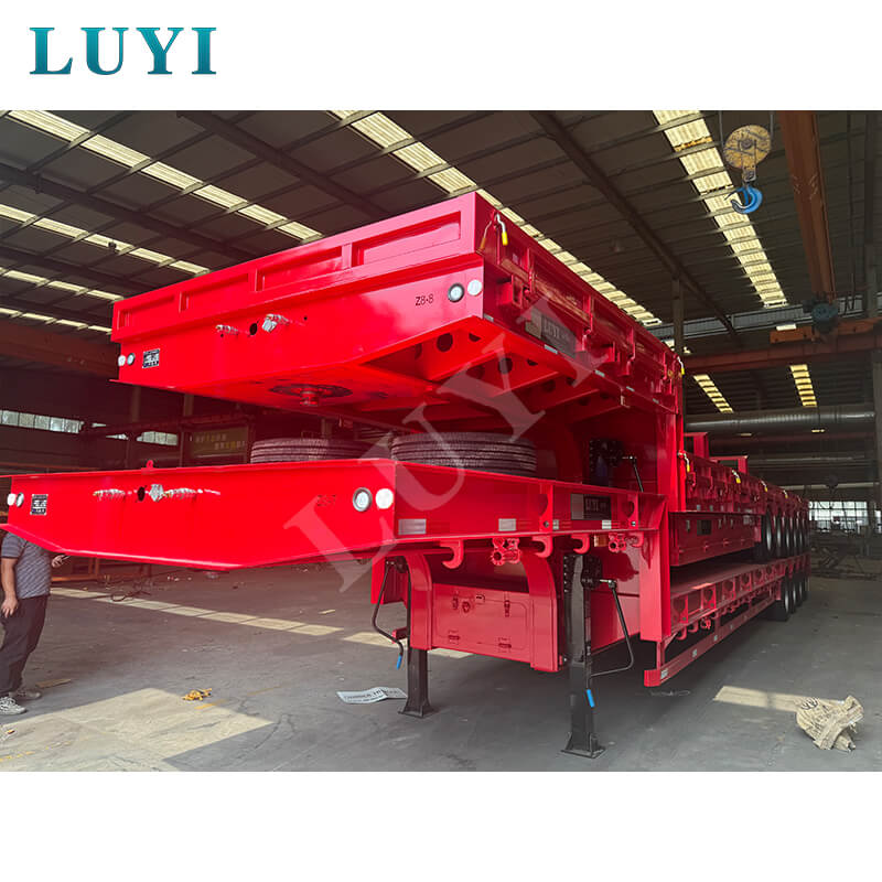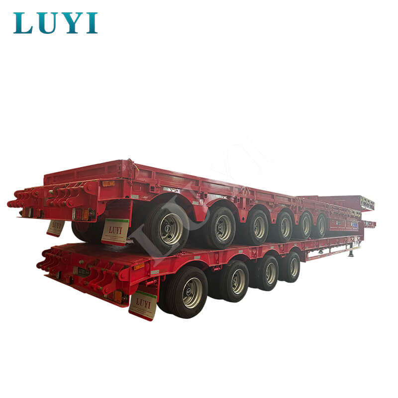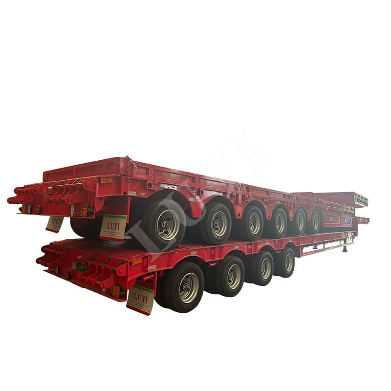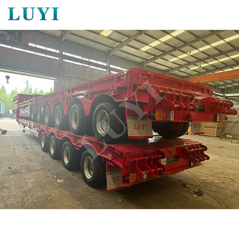 中国山東省出身のLuyi 6軸80-100トン格納式スチールコンテナローボーイセミトレーラーは、コンテナ輸送用に特別に設計された高効率トラックトレーラーです。高品質のスチールで作られており、寸法は 1300025001350mm で、有名な FUWA ブランドのアクスルを備えた 3/4/5/6 アクスルのオプションのアクスル構成を提供します。最大有効積載量は 20001 ~ 25000 kg です。