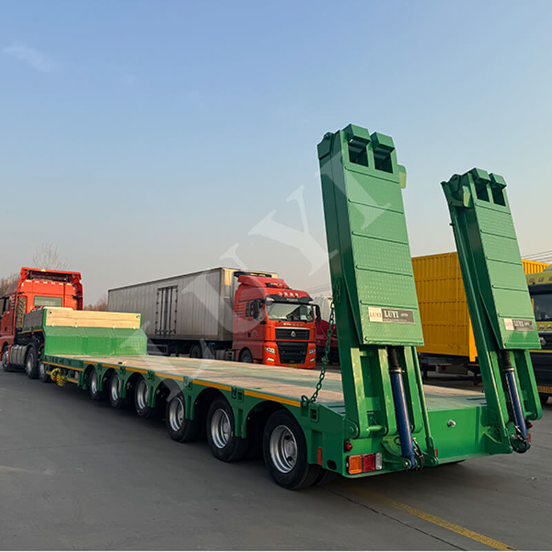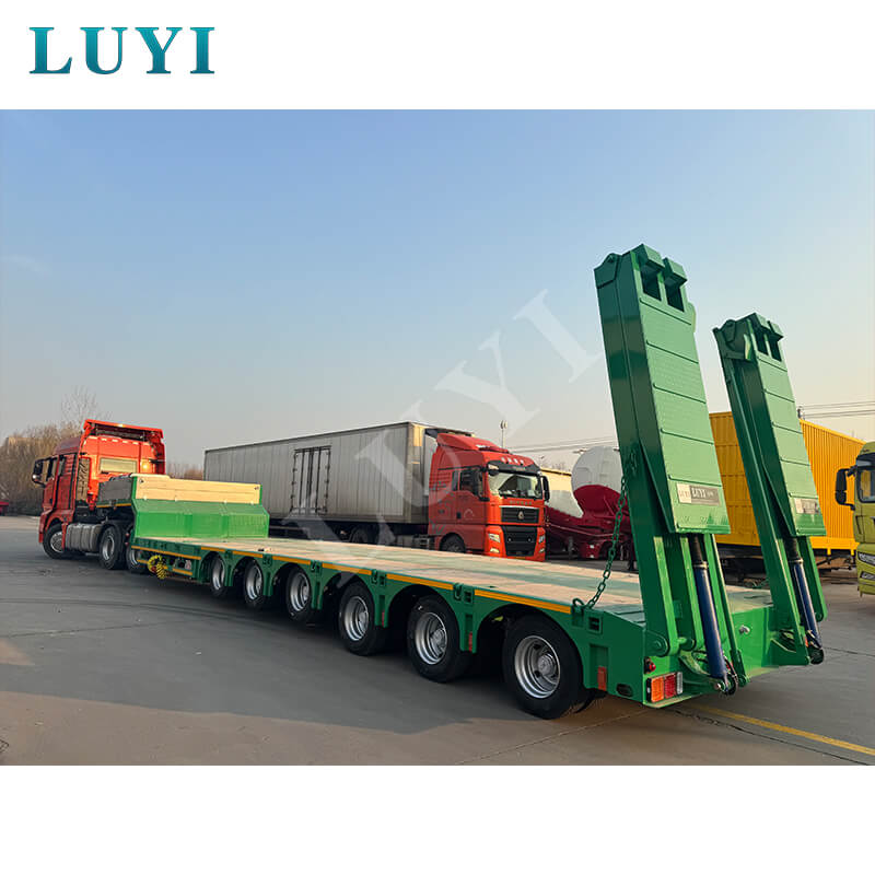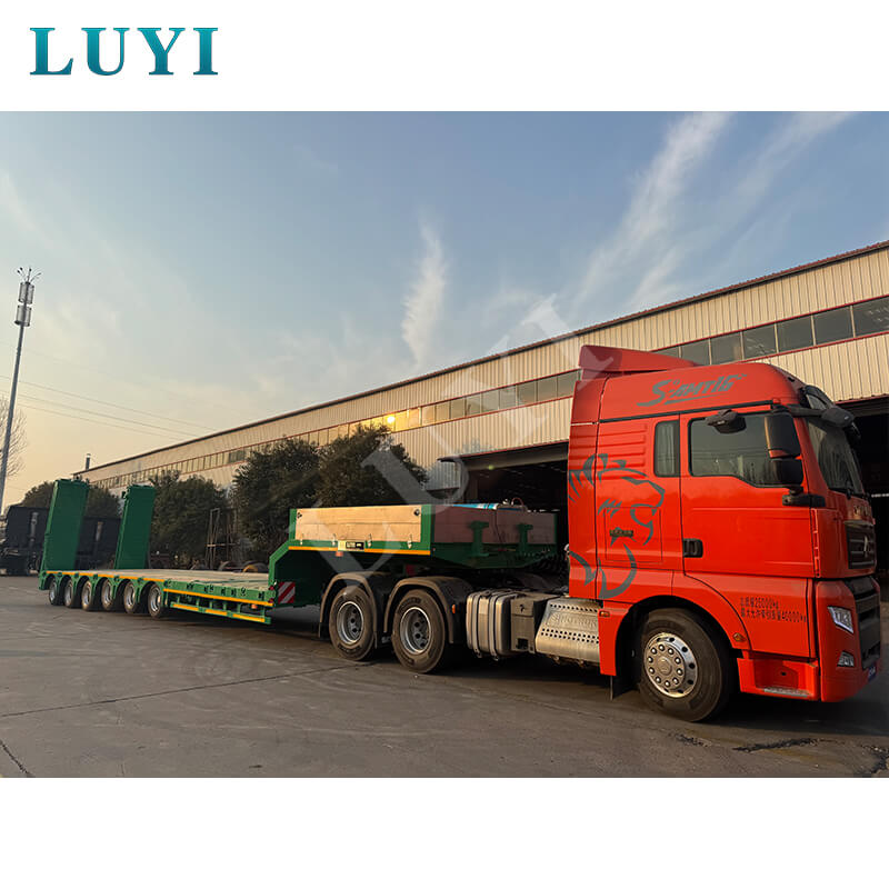 Luyi 6 軸 80 トンヘビーデューティーセミトレーラーは、中国山東省で製造され、重量物輸送シナリオ向けに設計されたプロ仕様のトラックトレーラーです。高品質の鋼材で作られており、最大有効積載量120トンを誇り、80トンの重機やその他の大型貨物を堅牢な性能で容易に扱います。