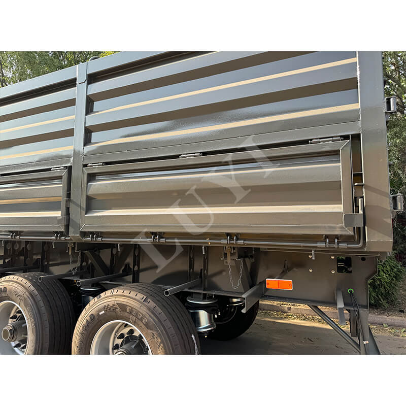 LUYI 60 トンクラス 4 軸サイドダンプセミトレーラーは、鉱山やインフラプロジェクトなどのシナリオでの重量物バルク貨物輸送用にカスタマイズされています。横転倒式油圧アンロード構造を採用し、狭いスペースでも素早い荷降ろしが可能で、数分以内に区画を完全に空にすることができ、貨物の回転効率が大幅に向上します。主要な耐荷重コンポーネントは高強度で耐久性のあるスチール製で、4 軸設計とエアサスペンション エアバッグと組み合わせられています。これにより、60トンの重量物の圧力を分散して法規制を満たすだけでなく、荷重に応じて衝撃吸収の硬さを調整し、荷物の揺れや路面への衝撃を軽減します。車両全体で効率的な荷降ろし、重量物耐久性、走行安定性をバランスさせており、重量物大量輸送に安心してご使用いただけます。
