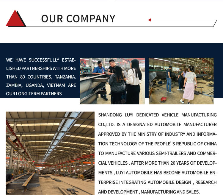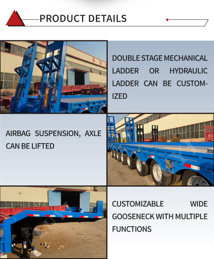 高品質のスチールで作られたメインビームは高強度 T700/Q345 スチールを使用し、耐久性と耐食性を兼ね備えたポリウレタン塗装プロセスで仕上げられています。最大有効荷重30,000kg以上、耐荷重150トンを実現し、超重量物の輸送ニーズにも容易に対応します。サイズは 19,000 × 3,000 × 1,800 mm で、13 トンの Fuwa ブランド車軸が装備されており、サスペンション システムはオプションでメカニカル サスペンションまたはエア サスペンションを提供します。 11.00r20 や 12r22.5 などの複数の仕様のタイヤと組み合わせられ、複雑な道路状況に適応します。
