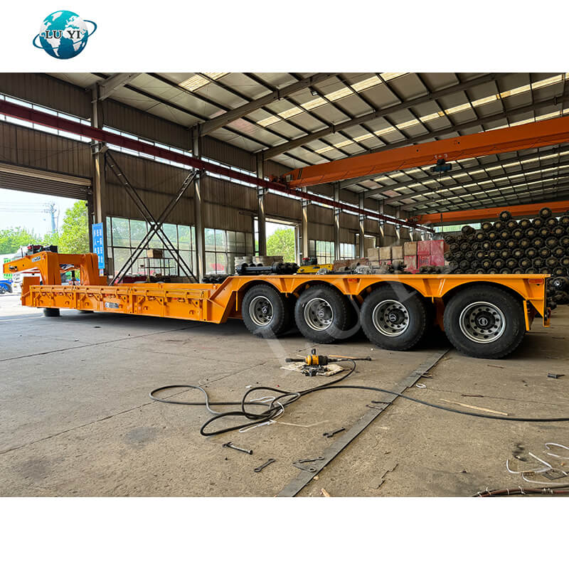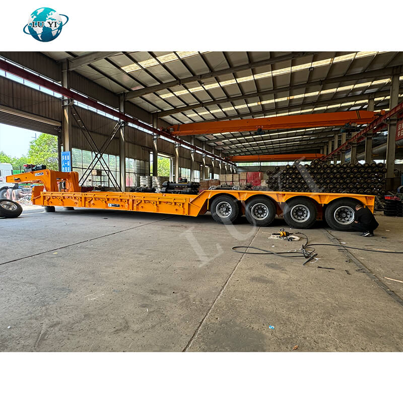 高品質の鋼材で作られており、サイズは17500×3000×1830mm、最大積載量は100Tで、大型で重い機器の輸送も容易に行えます。 FUWA、BPW、または LUYI ブランドで入手可能な 5 つの車軸が装備されており、12R22.5 タイヤと組み合わせられています。エアサスペンションとメカニカルサスペンションの両方のオプションが提供され、重い荷重下でも安定した走行と効果的な荷物の保護を保証します。