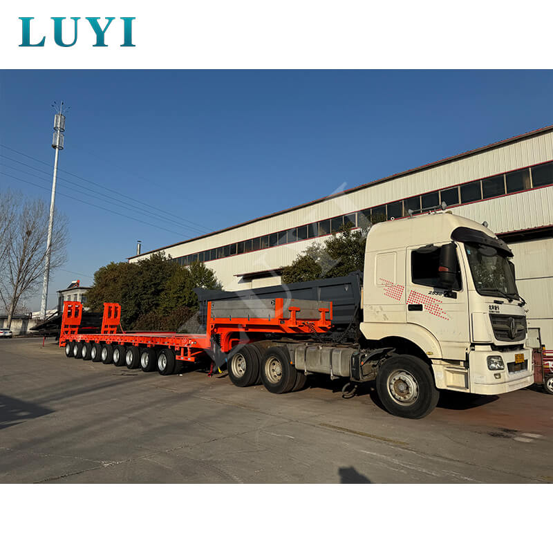 中国山東省出身の Luyi 9 軸 100 トン グースネック ローボーイ セミトレーラーは、重量貨物輸送用に特別に設計された高品質のセミトレーラー機器です。トラックの牽引に対応しており、寸法は17x2.55x1.5mです。 9 軸構成とオプションのメカニカル サスペンションまたはエア サスペンションを備え、積載量は 60 ~ 120 トン、最大積載量は 100 トンで、堅牢な軸受性能を実現します。