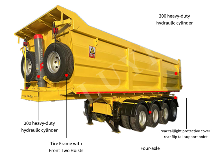 中国の高品質製造拠点である山東省で生まれた LUYI 4 軸リアダンプセミトレーラーは、バルク貨物の重量輸送に適した高効率装置です。高張力鋼で作られており、耐久性と耐荷重安定性を兼ね備えており、最大積載量 80 トンを誇り、積載能力 60 ~ 80 トンで完全な作業条件に適応します。石炭、砂、鉱石などのバルク品の長距離輸送に広く適しています。
