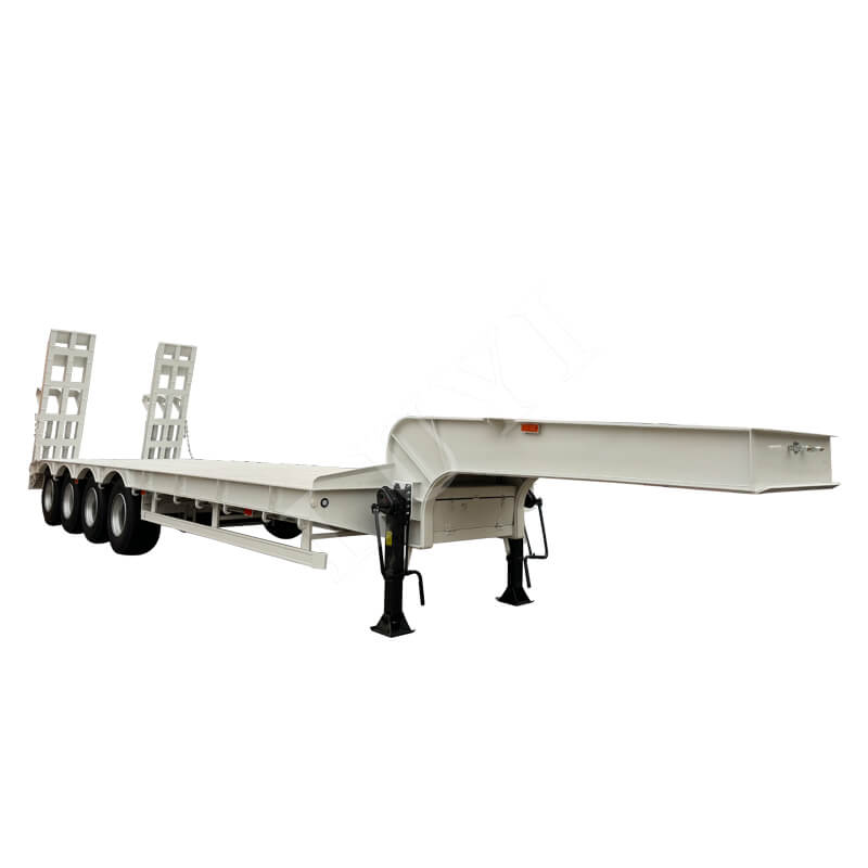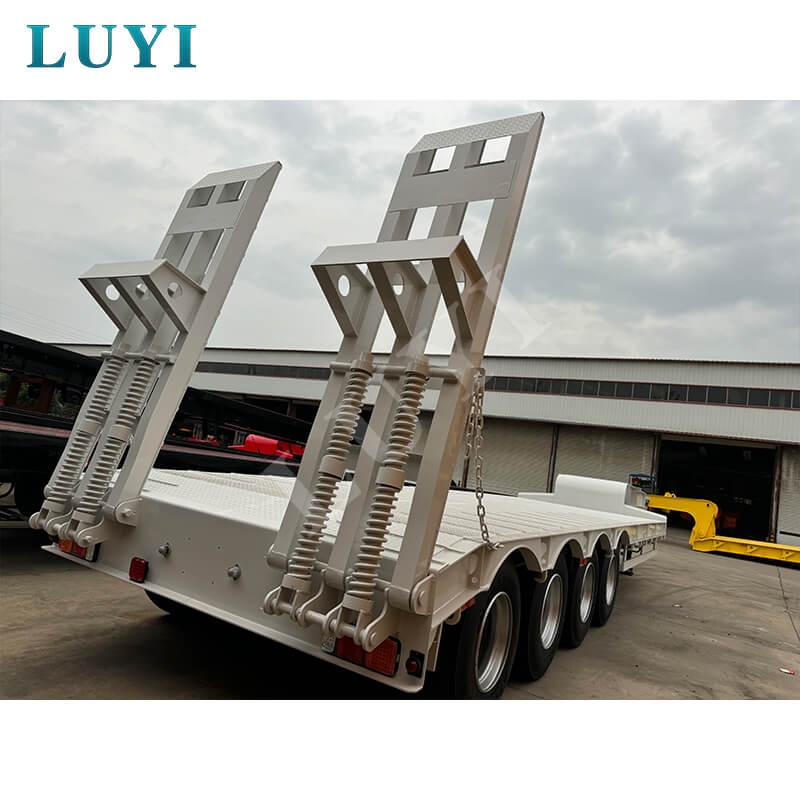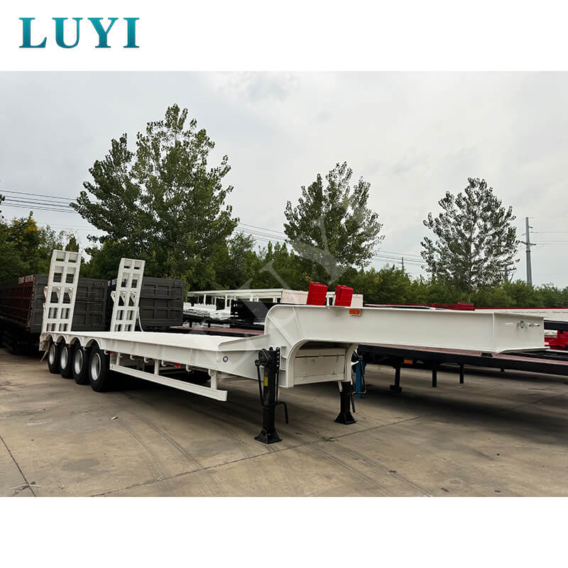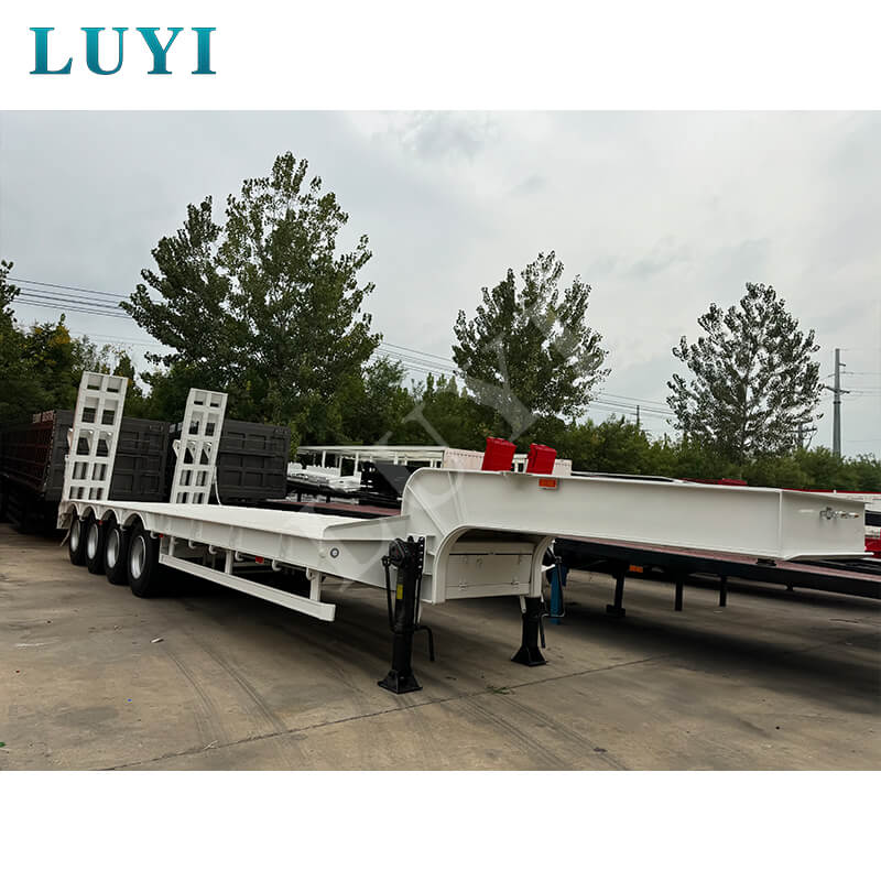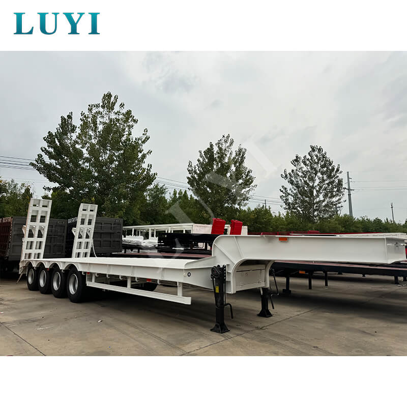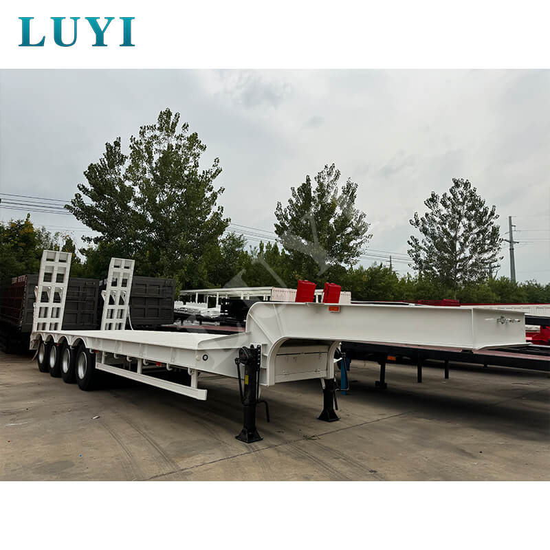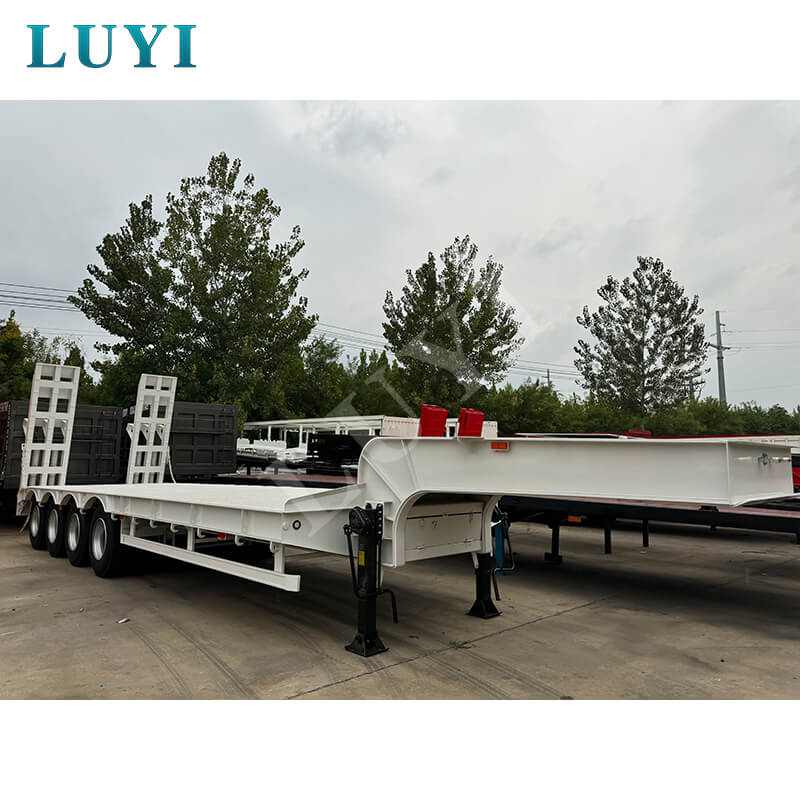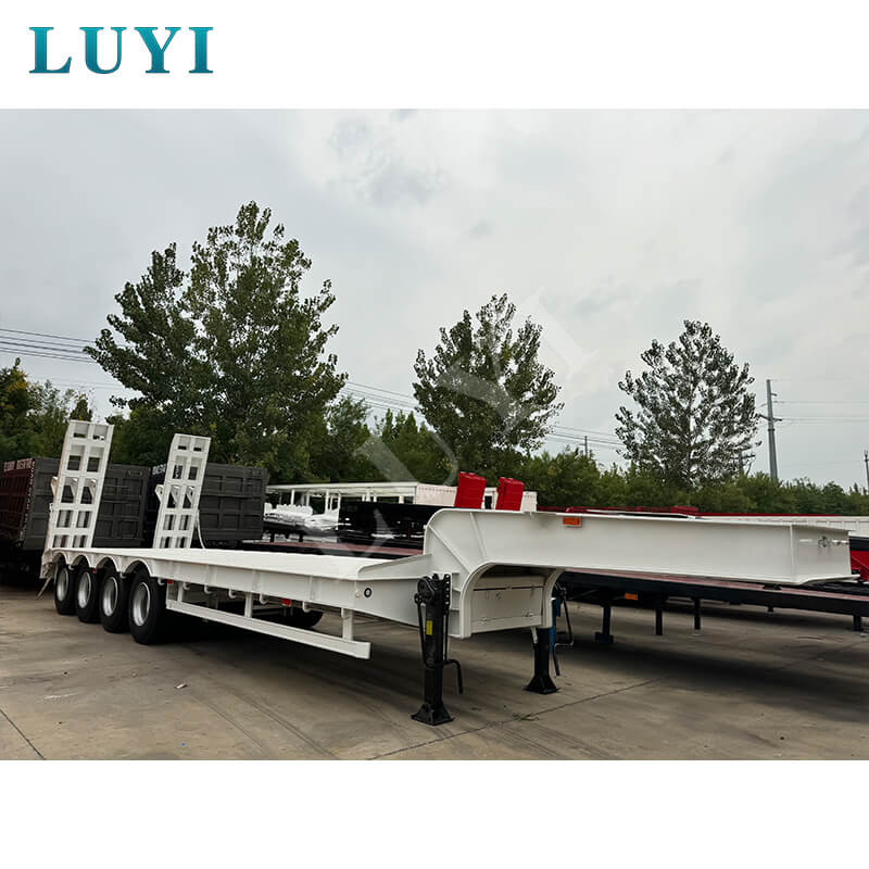Luyi Vehicle の頑丈な 4 軸低床トレーラーは、中国山東省で製造され、セミトレーラー モデルであり、重機輸送に信頼できる選択肢です。