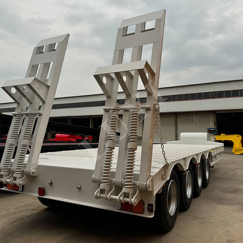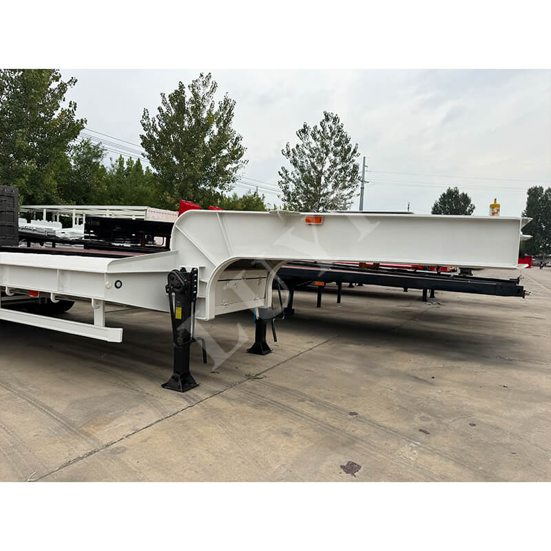 トレーラーは高品質のスチール製で、メインビームには T700/Q345 スチールが使用されており、頑丈で耐久性のある構造を保証します。サイズは16000×3500×1800mm、積載量は25トンから80トン、最大有効積載量は80トンで、様々な重機輸送ニーズに容易に対応します。