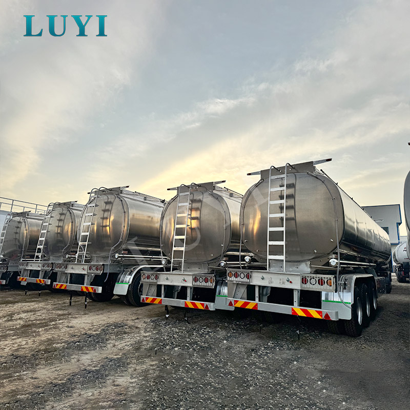 CLW 社製の LUYI ブランドの全アルミニウム製 48,000 リットル 3 軸パーム油輸送セミトレーラーは、パーム油の長距離輸送に最適な機器です。本体寸法は1300025003600mm、高品質のスチール製で、自重は12,500kgです。積載量は30Tから60Tまで、最大有効積載量は50トンで、積載量と輸送効率を両立させています。