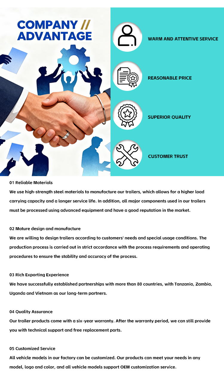 実際の輸送要件に基づいてカスタマイズされた見積もりを取得するには、お問い合わせを送信してください。トレーラーの種類、貨物または積載量、道路状況、目的地、数量をお知らせいただければ、当社のチームができるだけ早く適切な提案をさせていただきます。