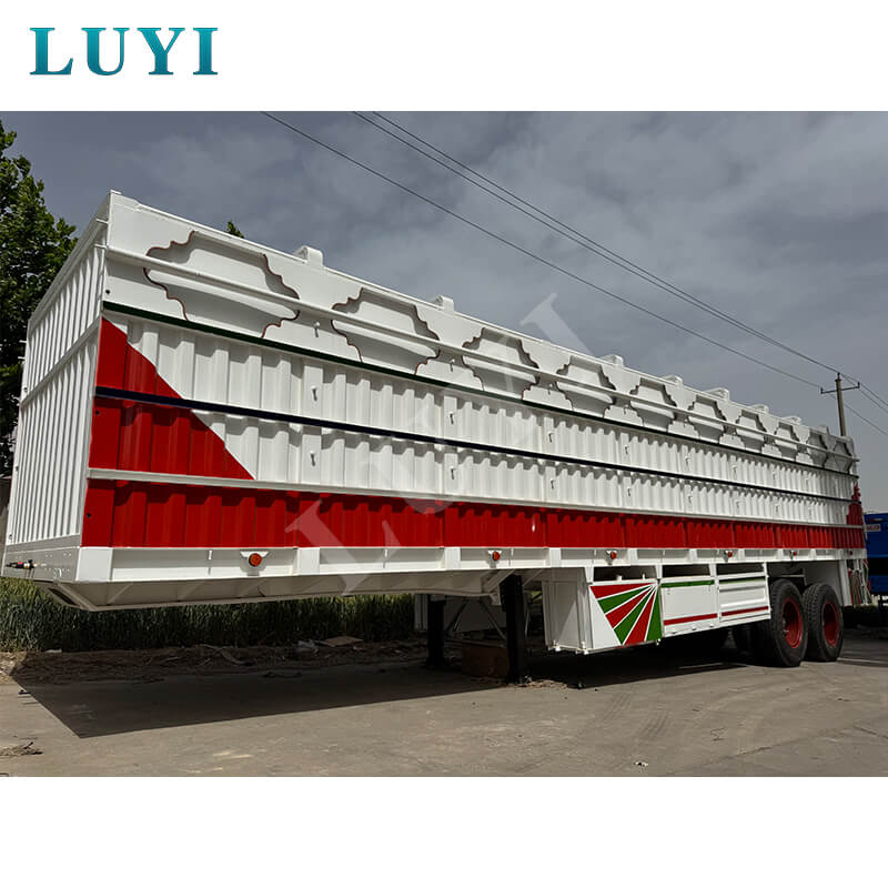 Luyi 2 軸 100 トン ステーク セミトレーラーは、中国山東省発の真新しい貨物トレーラーで、効率的な重量物輸送用に特別に設計されています。本体は高張力鋼板を使用しており、耐圧性、耐久性に優れています。最大有効積載量60トンで、バルク品やコンテナを柔軟に輸送し、さまざまな貨物シーンに適応します。