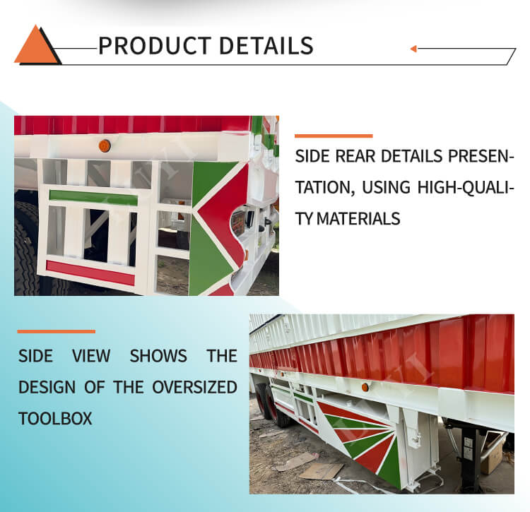 製品の寸法は 12500×2500×1600 mm で、3 つのアクスル (オプションの ZY、Fuhua、BPW ブランド) とスムーズな運転を確保するためのメカニカル/エア サスペンションのデュアル オプションが装備されています。 JOST規格の28トンサポートレッグと12R22.5/12.00R20/11R22.5仕様のタイヤを組み合わせ、積み下ろしの安全性と道路状況への適応性をさらに高めています。さらに、90×13×10 mm の板バネにより耐荷重安定性が向上し、必要に応じて色をカスタマイズできるため、物流や輸送に信頼性が高く柔軟なカスタマイズ ソリューションを提供します。