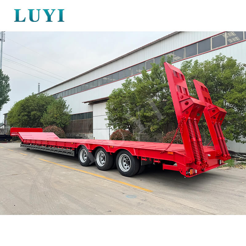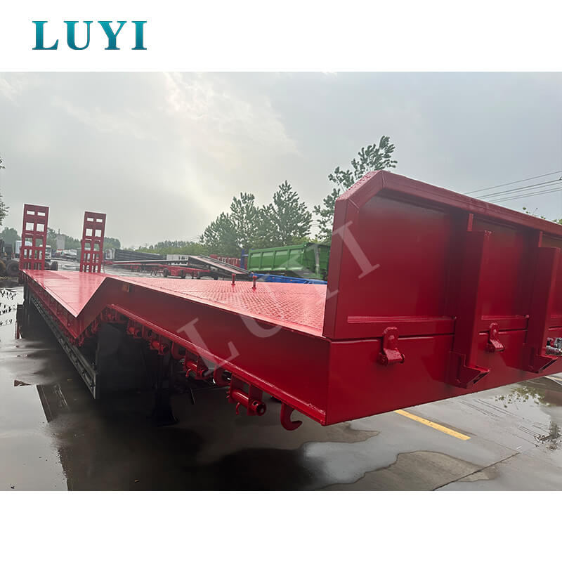 LUYI 3 軸 80 トン ローシャーシ フラットベッド セミトレーラーは、中国山東省の最新の大型輸送車両で、重機の輸送シナリオに合わせてカスタマイズされています。