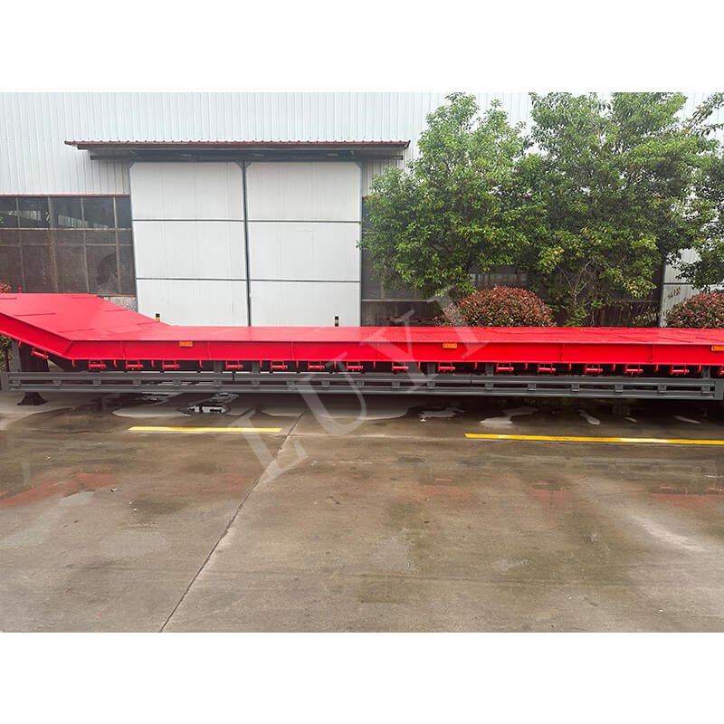 高品質の鋼材を使用したトレーラーのサイズは17000×2500mm、最大積載量は80Tで、重量物機器の搬送も容易に行えます。 12R22.5 タイヤと組み合わせて、さまざまな荷重要求に適応する柔軟なアクスル構成 (2/3/4 アクスル) を提供します。メカニカルサスペンションシステムとエアサスペンションシステムの両方をオプションで選択でき、安定した走行と輸送中の荷物の効果的な保護を保証します。