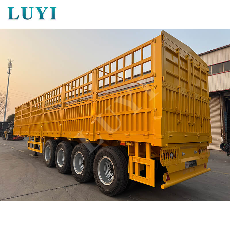 Luyi 着脱式サイドボード 4 軸サイドウォールセミトレーラーは、中国山東省で生産され、バルク品やコンテナの輸送に適した平床セミトレーラータイプです。トレーラー本体は高品質の鋼材で作られており、寸法は12500×2500×1600 mm、最大有効積載量は80トンで、強力な耐荷重能力で60〜80トンの輸送ニーズに応えます。