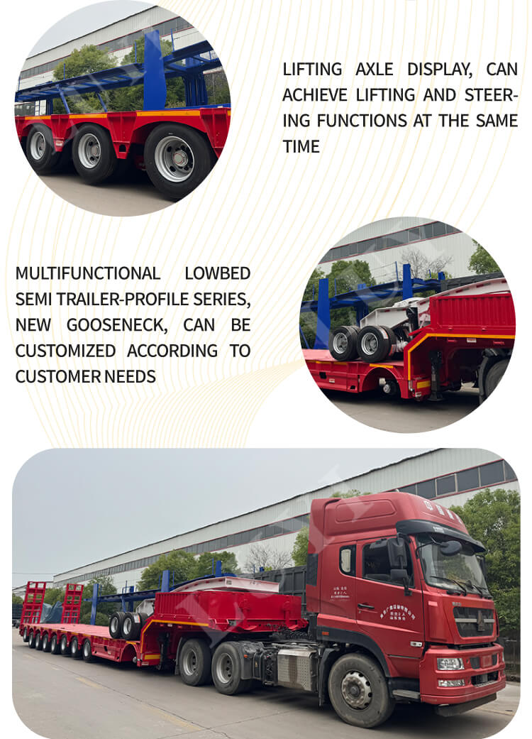 トレーラーは優れたコア構成を誇ります。 8つの車軸を備え、有名ブランドの車軸(BPWまたはFUWA)と一致し、12R22.5タイヤと組み合わせて、安定した走行と強力な耐荷重能力を保証します。サスペンション システムには、メカニカル サスペンションとエア サスペンションの 2 つのオプションがあり、さまざまな輸送シナリオに柔軟に適応して、荷物への衝撃の影響を効果的に軽減できます。