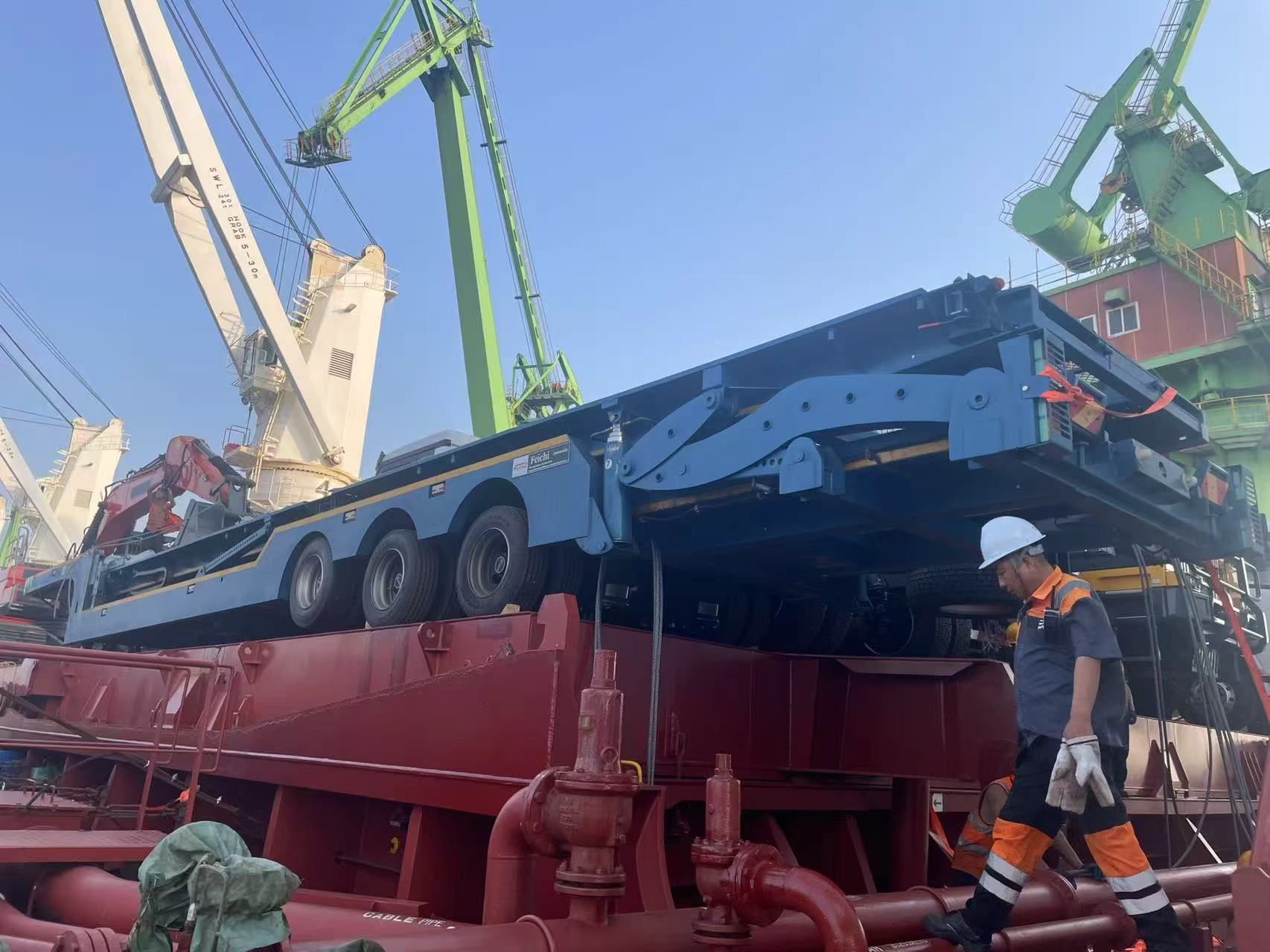初秋、山東省の国際港は賑わいを見せた。数十の陸儀3軸4フィートフラットベッドセミトレーラーターミナルに整然と駐車されていました。税関検査や安全強化などの複数の手続きを経た後、平床セミトレーラーは専門の吊り上げ装置によって外航貨物船の貨物倉にゆっくりと持ち上げられました。この積み込み作業は、Luyiブランドとカザフスタンの顧客との間の国境を越えた輸送協力の正式な開始を示した。 Luyi 3 軸 4 フィート フラットベッド セミトレーラーは、国境を越えてカザフスタンのエンジニアリング輸送部門に重荷重ソリューションを提供します。