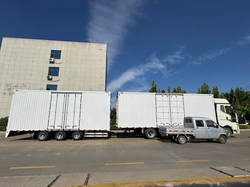 弊社タンデムバン・セミトレーラーのフロントシャーシブランドを選択し、お客様のご要望に合わせたバンを搭載することが可能です。リアトレーラーはバンセミトレーラー、3X13T Guangdong Fuhua または BPW ブランドで、オプションのエアサスペンションまたはメカニカルサスペンションが付いています。 12R22.5タイヤ、高耐久リーフスプリング、WABCOリレーバルブ、24V電気回路、LEDランプ、リアコンテナ式両開きドアを採用しています。この車両は特殊な粉末スプレープロセスを使用しており、中央アジア諸国の顧客から高い評価を得ています。
