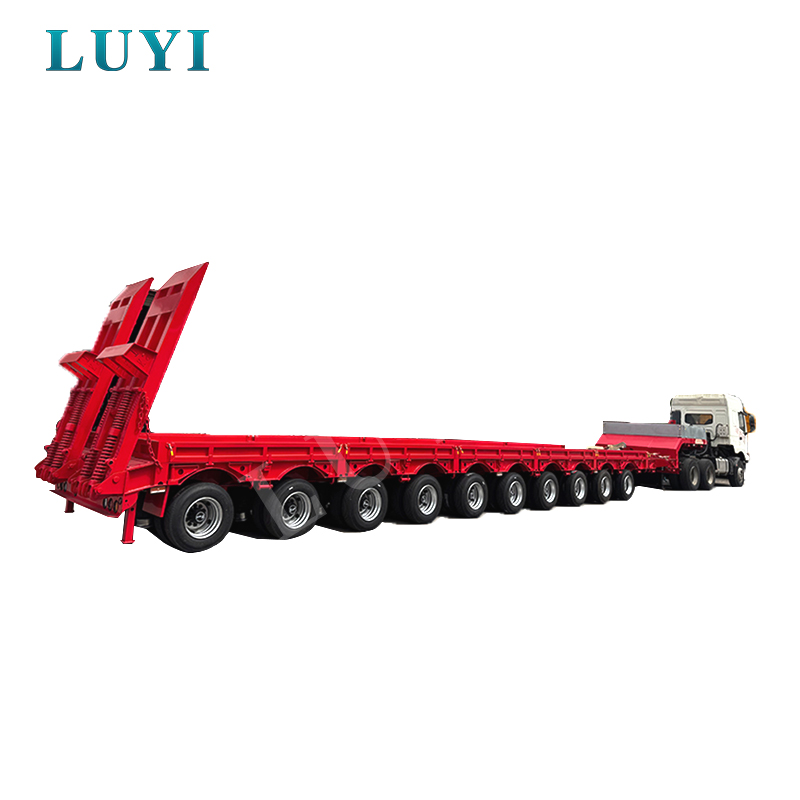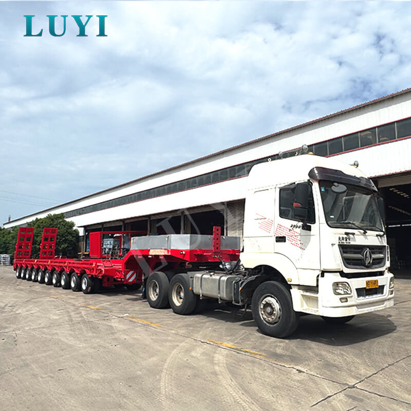 中国山東省LUYIの10軸80~100トン低床セミトレーラーは、重量貨物輸送に最適です。高品質の鋼材で作られており、1780030001500mm と 1800030001500mm の 2 つのサイズオプションがあり、最大耐荷重は 100 トン、通常定格荷重は 80 トンで、並外れた耐荷重能力を誇ります。